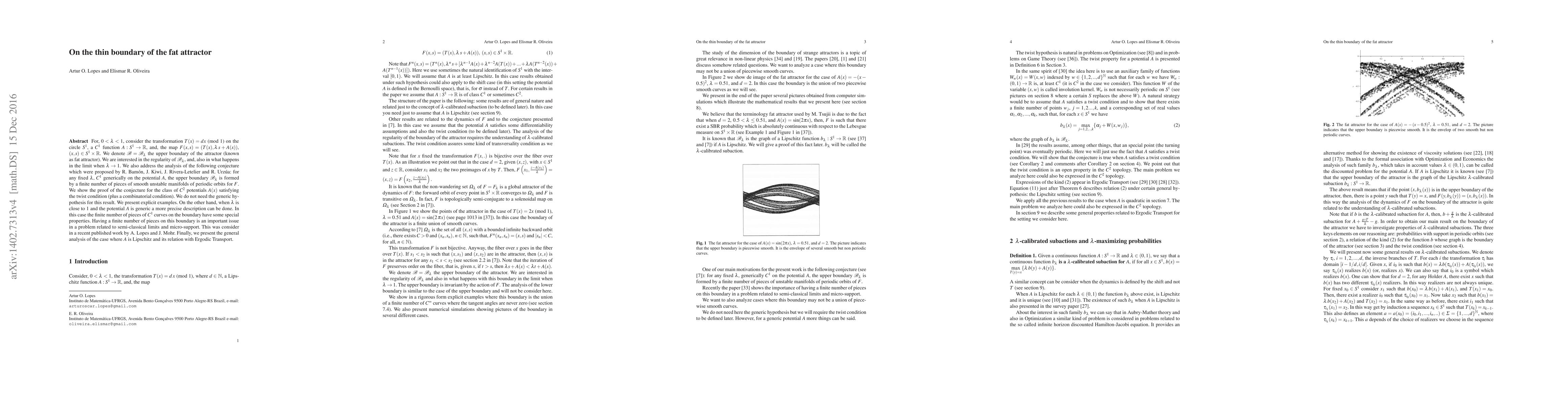 For, $0<\lambda<1$, consider the transformation $T(x) = d x $ (mod 1) on the circle $S^1$, a $C^1$ function $A:S^1 \to \mathbb{R}$, and, the map $F(x,s) = ( T(x) , \lambda \, s + A(x))$, $(x,s)\in S^1 \times \mathbb{R}$. We denote $\mathcal{B}= \mathcal{B}_\lambda$ the upper boundary of the attractor (known as fat attractor). We are interested in the regularity of $\mathcal{B}_\lambda$, and, also in what happens in the limit when $\lambda\to 1$. We also address the analysis of the following conjecture which were proposed by R. Bam\'on, J. Kiwi, J. Rivera-Letelier and R. Urz\'ua: for any fixed $\lambda$, $C^1$ generically on the potential $A$, the upper boundary $\mathcal{B}_\lambda$ is formed by a finite number of pieces of smooth unstable manifolds of periodic orbits for $F$. We show the proof of the conjecture for the class of $C^2$ potentials $A(x)$ satisfying the twist condition (plus a combinatorial condition). We do not need the generic hypothesis for this result. We present explicit examples. On the other hand, when $\lambda$ is close to $1$ and the potential $A$ is generic a more precise description can be done. In this case the finite number of pieces of $C^1$ curves on the boundary have some special properties. Having a finite number of pieces on this boundary is an important issue in a problem related to semi-classical limits and micro-support. This was consider in a recent published work by A. Lopes and J. Mohr. Finally, we present the general analysis of the case where $A$ is Lipschitz and its relation with Ergodic Transport