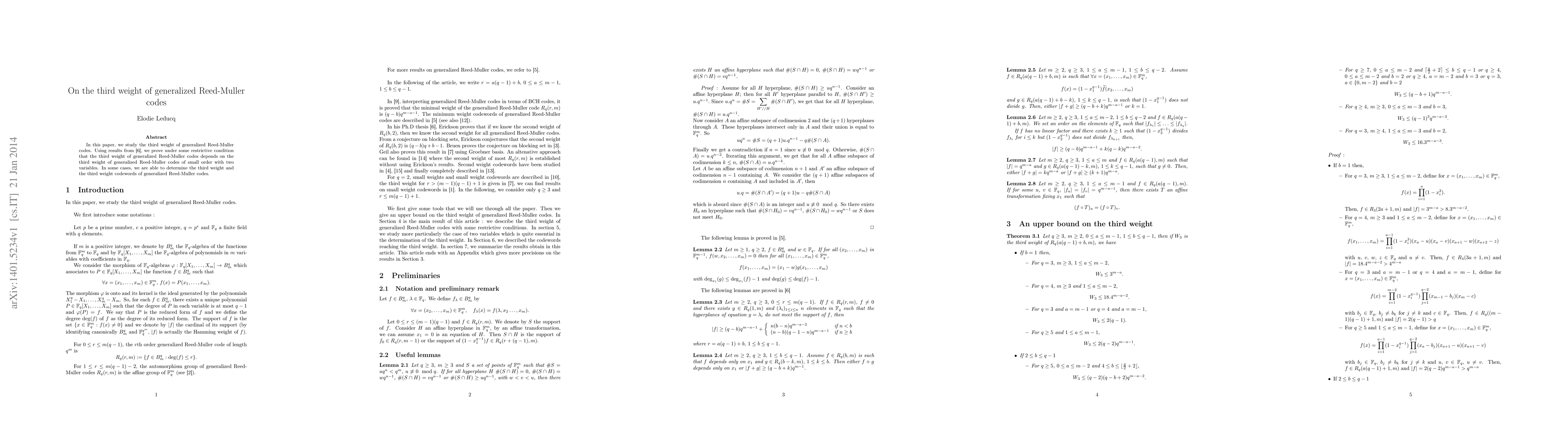 This paper investigates the third weight of generalized Reed-Muller codes, proving under specific conditions that this weight relates to that of lower-order codes with two variables. It also identifies instances where the exact third weight and corresponding codewords can be determined.