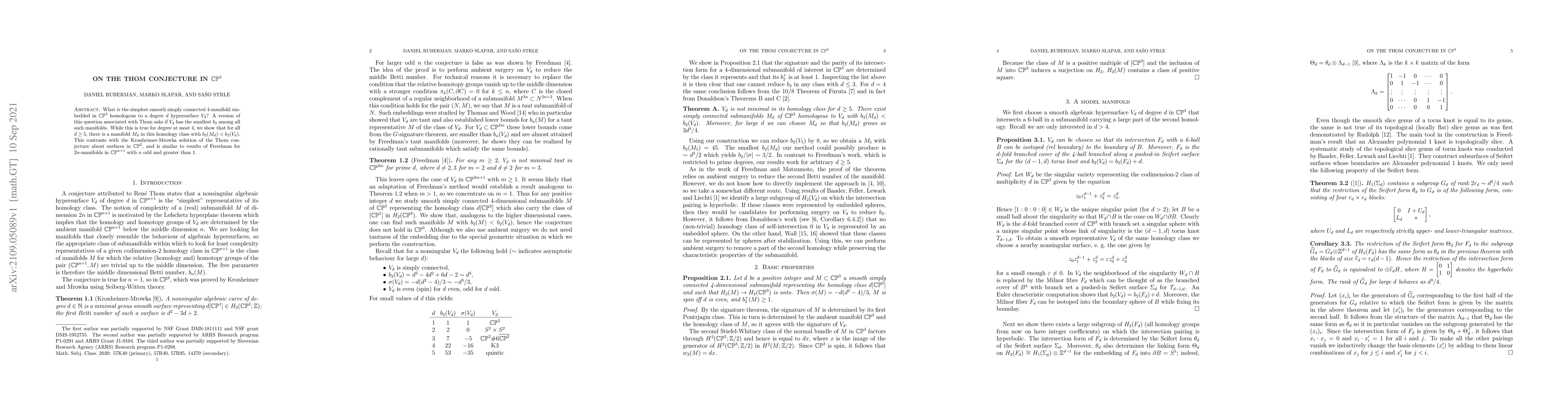 What is the simplest smooth simply connected 4-manifold embedded in $CP^3$ homologous to a degree $d$ hypersurface $V_d$? A version of this question associated with Thom asks if $V_d$ has the smallest $b_2$ among all such manifolds. While this is true for degree at most $4$, we show that for all $d \geq 5$, there is a manifold $M_d$ in this homology class with $b_2(M_d) < b_2(V_d)$. This contrasts with the Kronheimer-Mrowka solution of the Thom conjecture about surfaces in $CP^2$, and is similar to results of Freedman for $2n$-manifolds in $CP^{n+1}$ with $n$ odd and greater than $1$.