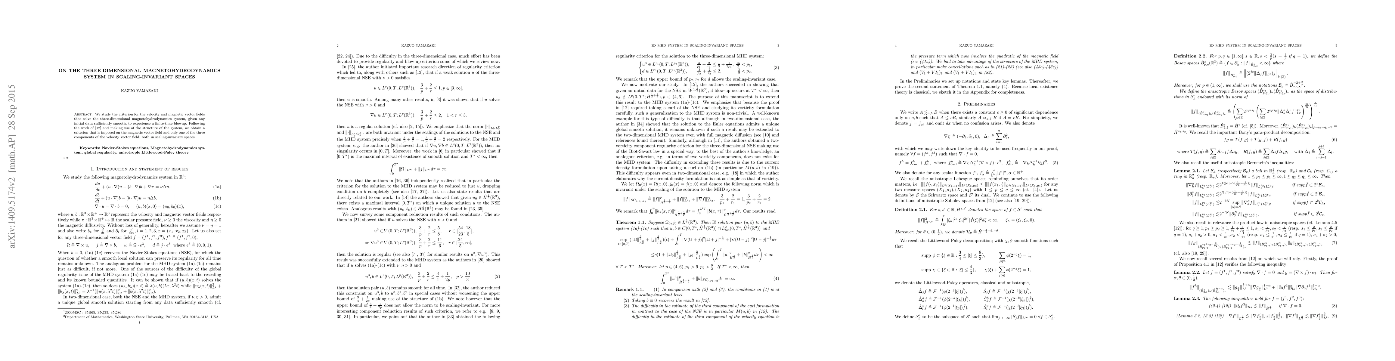 We study the criterion for the velocity and magnetic vector fields that solve the three-dimensional magnetohydrodynamics system, given any initial data sufficiently smooth, to experience a finite-time blowup. Following the work of [12] and making use of the structure of the system, we obtain a criterion that is imposed on the magnetic vector field and only one of the three components of the velocity vector field, both in scaling-invariant spaces.