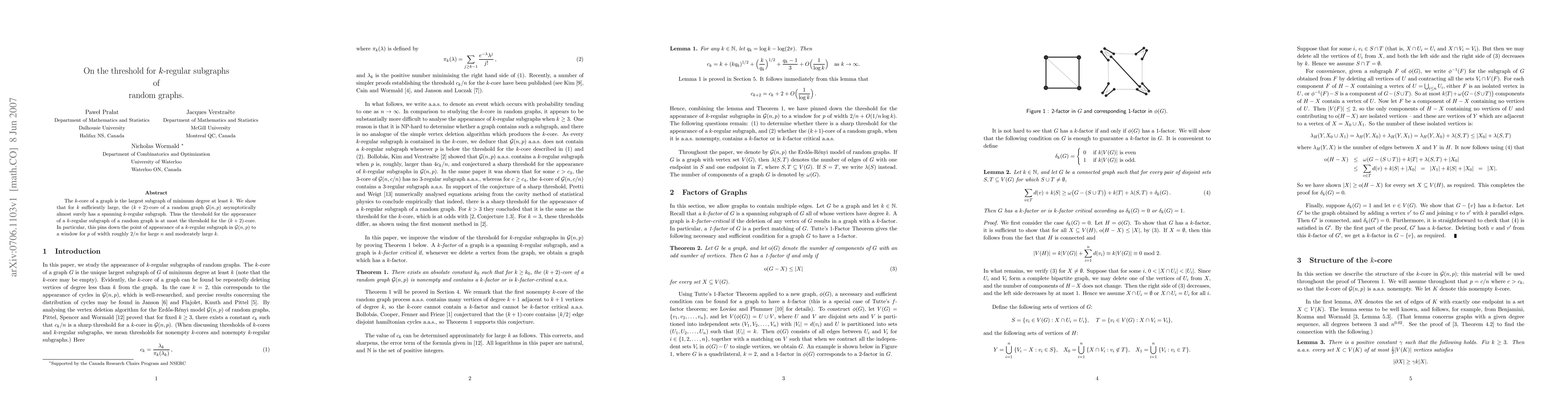 The $k$-core of a graph is the largest subgraph of minimum degree at least $k$. We show that for $k$ sufficiently large, the $(k + 2)$-core of a random graph $\G(n,p)$ asymptotically almost surely has a spanning $k$-regular subgraph. Thus the threshold for the appearance of a $k$-regular subgraph of a random graph is at most the threshold for the $(k+2)$-core. In particular, this pins down the point of appearance of a $k$-regular subgraph in $\G(n,p)$ to a window for $p$ of width roughly $2/n$ for large $n$ and moderately large $k$.