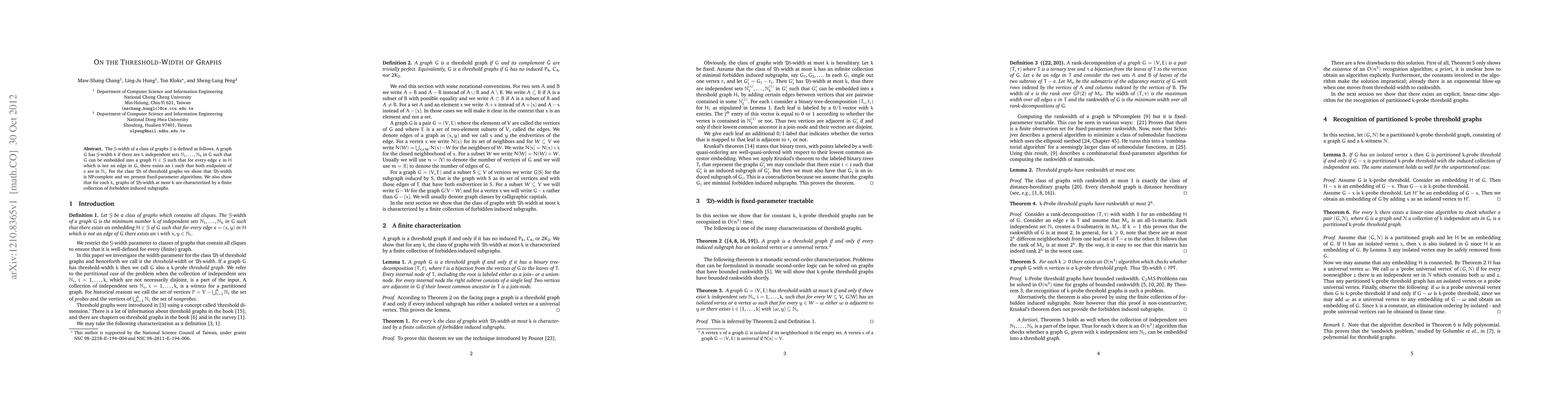 The GG-width of a class of graphs GG is defined as follows. A graph G has GG-width k if there are k independent sets N1,...,Nk in G such that G can be embedded into a graph H in GG such that for every edge e in H which is not an edge in G, there exists an i such that both endpoints of e are in Ni. For the class TH of threshold graphs we show that TH-width is NP-complete and we present fixed-parameter algorithms. We also show that for each k, graphs of TH-width at most k are characterized by a finite collection of forbidden induced subgraphs.