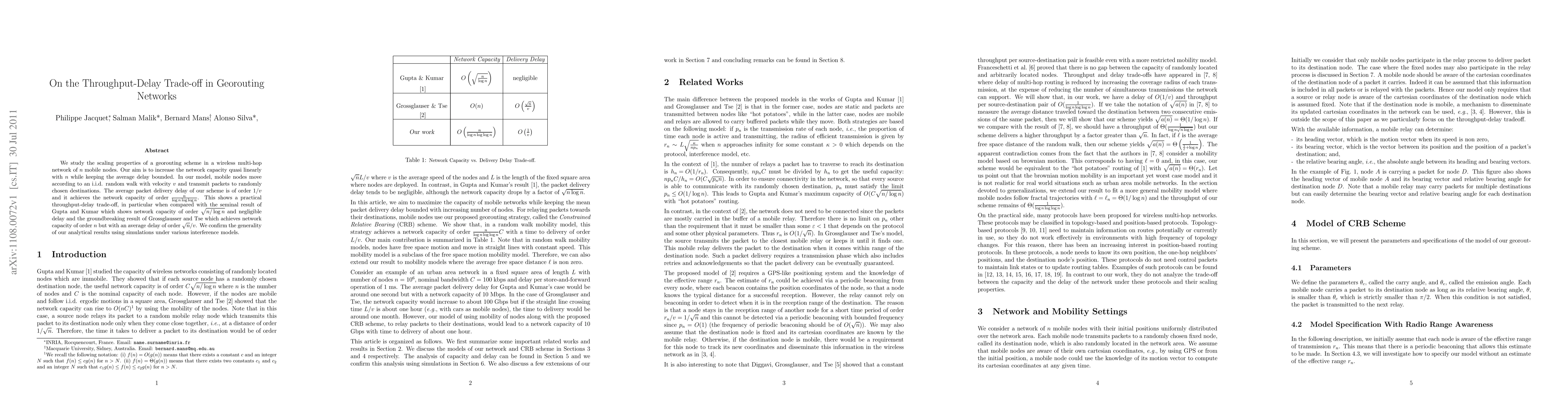 We study the scaling properties of a georouting scheme in a wireless multi-hop network of $n$ mobile nodes. Our aim is to increase the network capacity quasi linearly with $n$ while keeping the average delay bounded. In our model, mobile nodes move according to an i.i.d. random walk with velocity $v$ and transmit packets to randomly chosen destinations. The average packet delivery delay of our scheme is of order $1/v$ and it achieves the network capacity of order $\frac{n}{\log n\log\log n}$. This shows a practical throughput-delay trade-off, in particular when compared with the seminal result of Gupta and Kumar which shows network capacity of order $\sqrt{n/\log n}$ and negligible delay and the groundbreaking result of Grossglausser and Tse which achieves network capacity of order $n$ but with an average delay of order $\sqrt{n}/v$. We confirm the generality of our analytical results using simulations under various interference models.