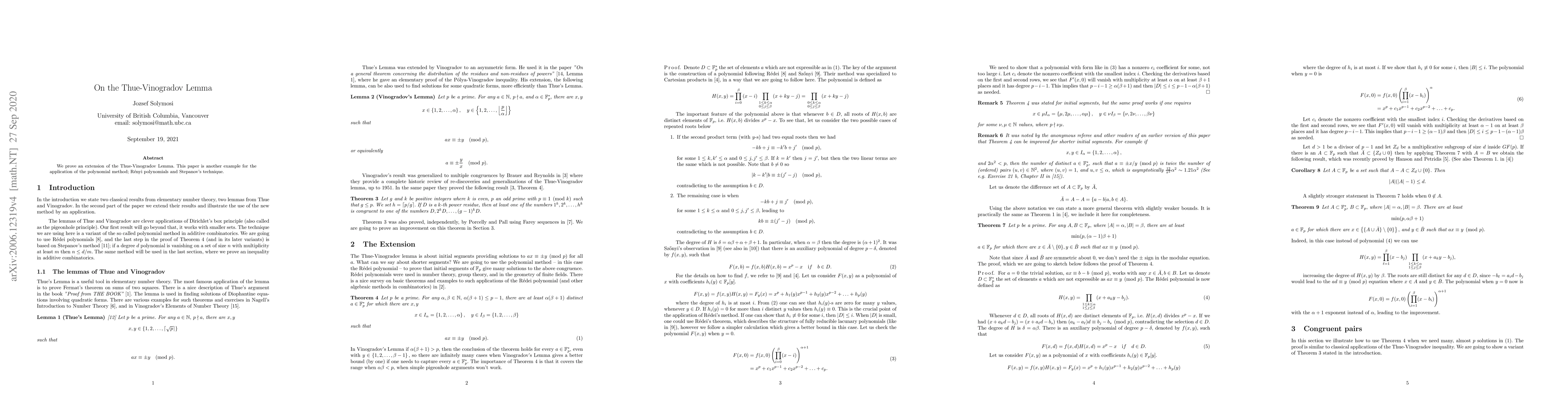 We prove an extension of the Thue-Vinogradov Lemma and show some applications. This paper is another example for the application of the polynomial method.