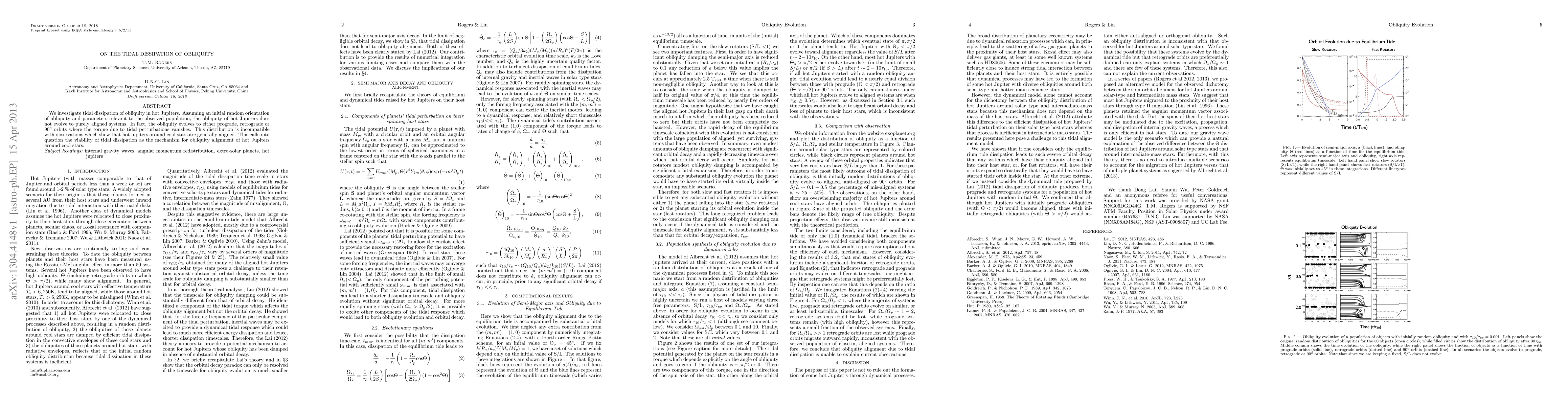 This study finds that tidal dissipation does not lead to purely aligned obliquity in hot Jupiters, instead resulting in prograde, retrograde, or 90° orbits. This contradicts observations of generally aligned hot Jupiters around cool stars, challenging the notion that tidal dissipation aligns their obliquity.