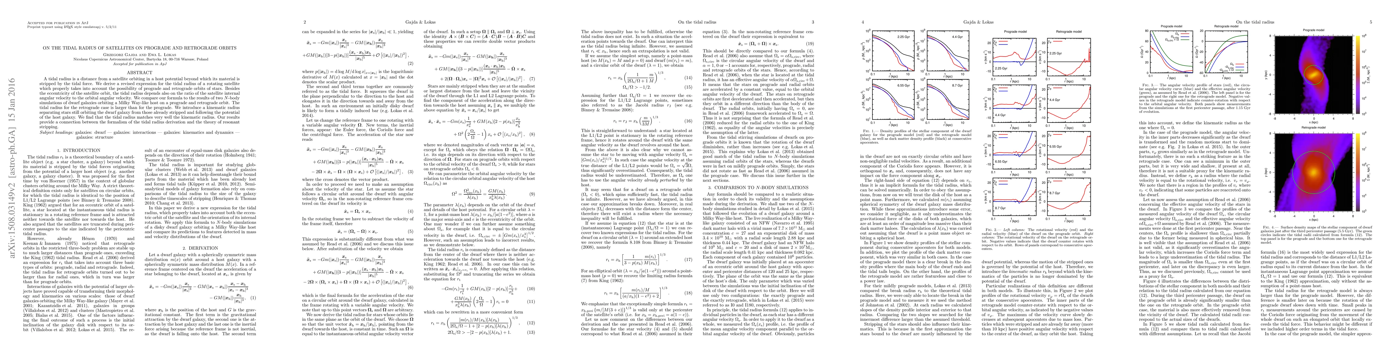 This paper derives a revised expression for the tidal radius of satellites considering prograde and retrograde orbits, showing that the tidal radius is larger for retrograde orbits. It correlates the derived tidal radius with the kinematic radius from $N$-body simulations, providing insights into resonant stripping theory.
