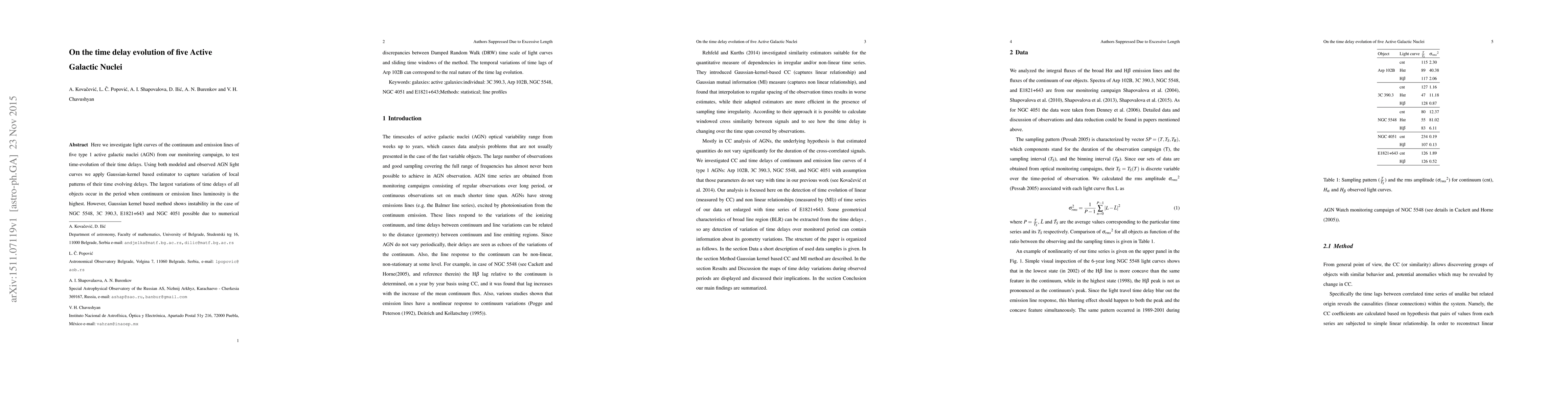 Here we investigate light curves of the continuum and emission lines of five type 1 active galactic nuclei (AGN) from our monitoring campaign, to test time-evolution of their time delays.Using both modeled and observed AGN light curves we apply Gaussian-kernel based estimator to capture variation of local patterns of their time evolving delays. The largest variations of time delays of all objects occur in the period when continuum or emission lines luminosity is the highest. However, Gaussian kernel based method shows instability in the case of NGC 5548, 3C 390.3, E1821+643 and NGC 4051 possible due to numerical discrepancies between Damped Random Walk (DRW) time scale of light curves and sliding time windows of the method. The temporal variations of time lags of Arp 102B can correspond to the real nature of the time lag evolution.