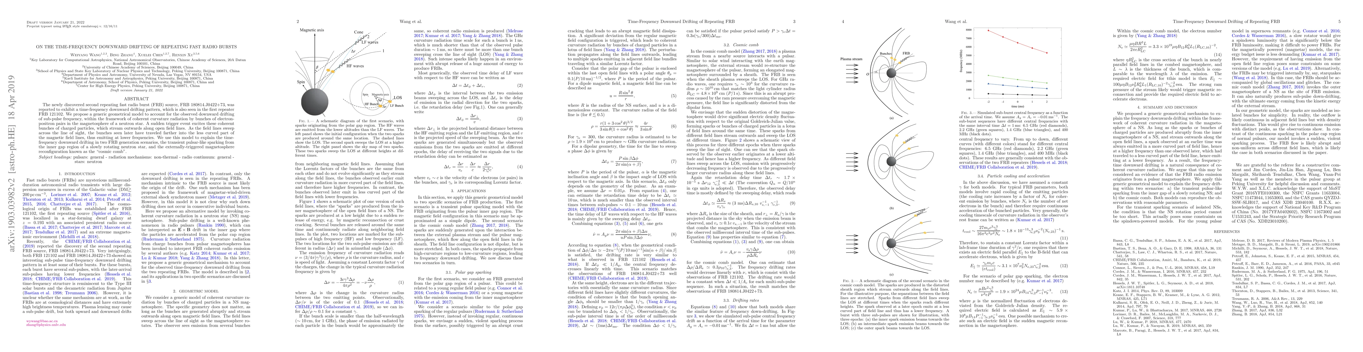 A new model explains the downward drifting of frequencies in repeating fast radio bursts (FRBs) as charged particles streaming outwards in a neutron star's magnetosphere, leading to lower frequency emissions over time.