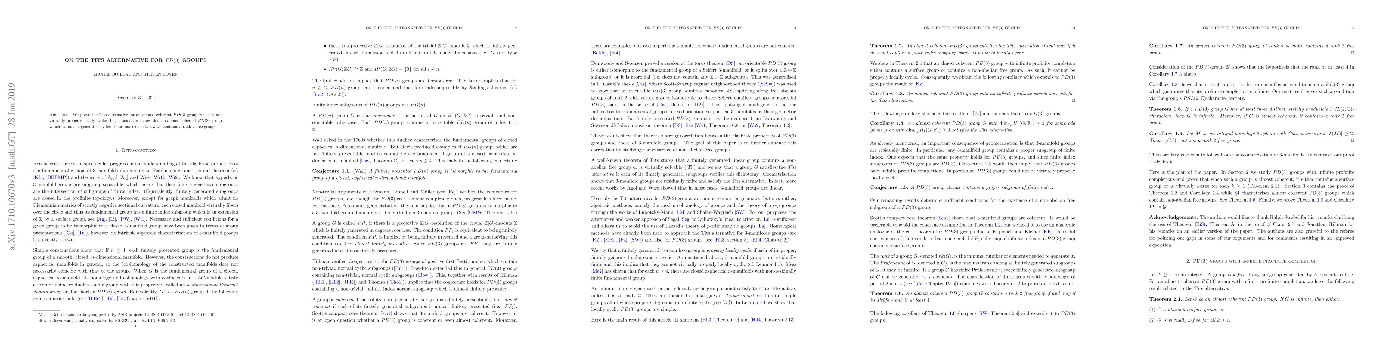 A new proof shows that almost coherent $PD(3)$ groups with four generators always contain a rank 2 free group, resolving the Tits alternative for these types of groups.