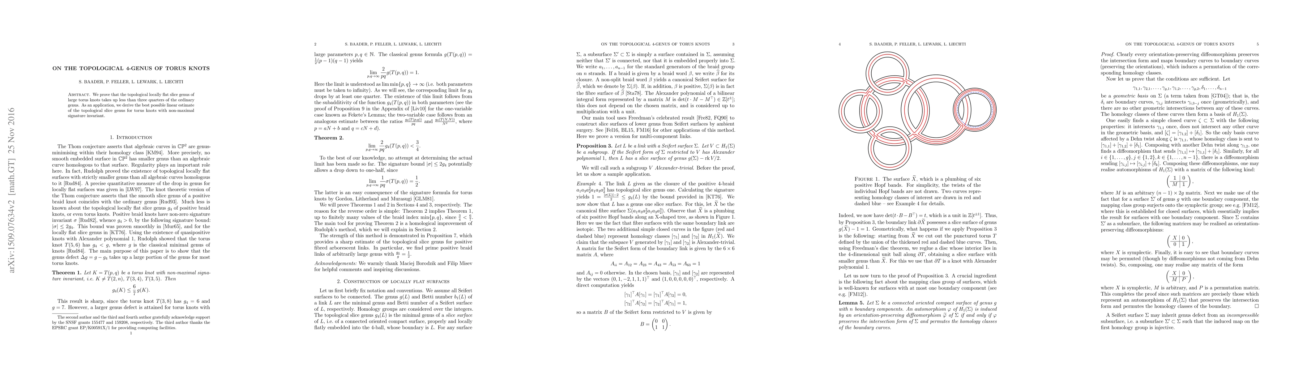 Summary: The paper establishes that the topological locally flat slice genus of large torus knots is less than three-quarters of their ordinary genus, providing the best linear estimate for the topological slice genus of torus knots with non-maximal signature.
