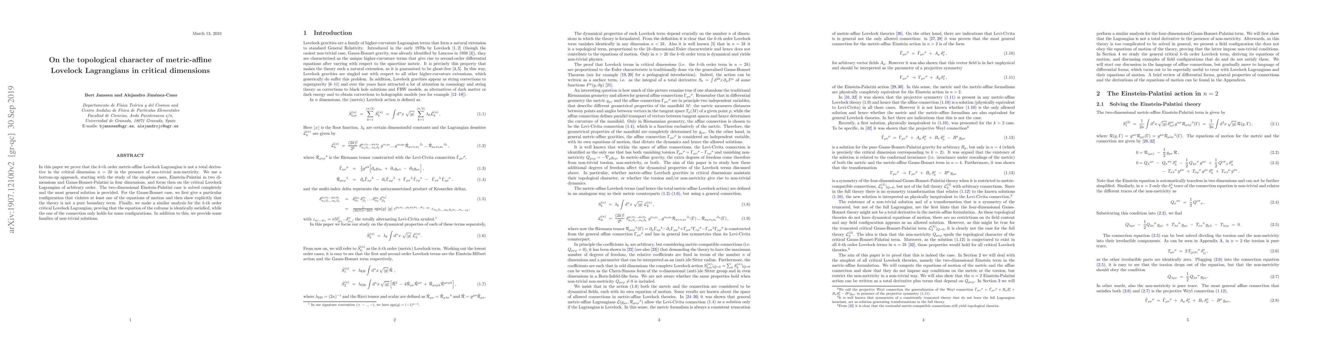 In this paper we prove that the $k$-th order metric-affine Lovelock Lagrangian is not a total derivative in the critical dimension $n=2k$ in the presence of non-trivial non-metricity. We use a bottom-up approach, starting with the study of the simplest cases, Einstein-Palatini in two dimensions and Gauss-Bonnet-Palatini in four dimensions, and focus then on the critical Lovelock Lagrangian of arbitrary order. The two-dimensional Einstein-Palatini case is solved completely and the most general solution is provided. For the Gauss-Bonnet case, we first give a particular configuration that violates at least one of the equations of motion and then show explicitly that the theory is not a pure boundary term. Finally, we make a similar analysis for the $k$-th order critical Lovelock Lagrangian, proving that the equation of the coframe is identically satisfied, while the one of the connection only holds for some configurations. In addition to this, we provide some families of non-trivial solutions.