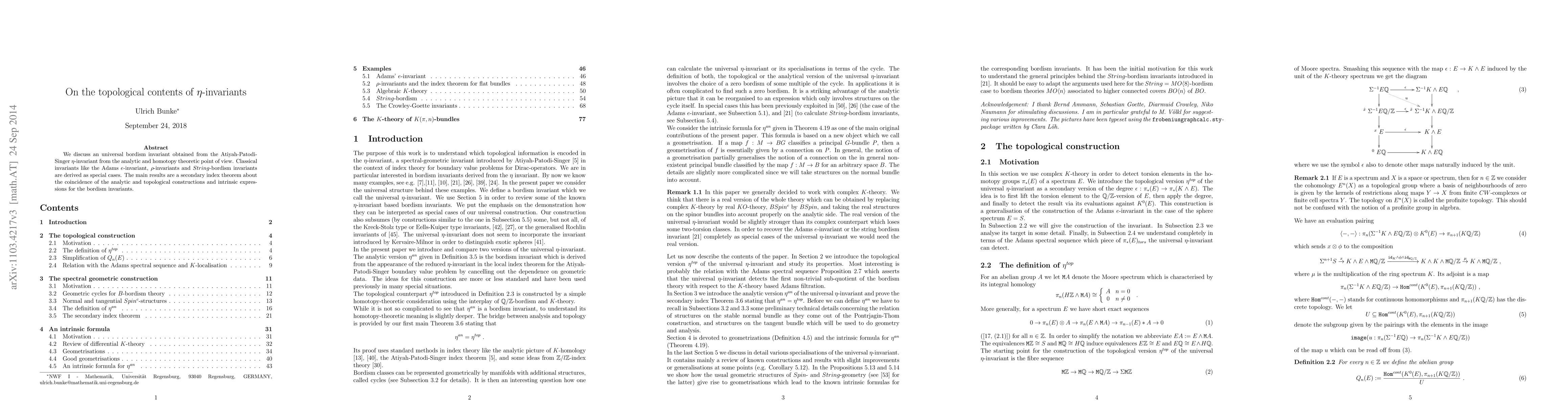 We discuss an universal bordism invariant obtained from the Atiyah-Patodi-Singer eta-invariant from the analytic and homotopy theoretic point of view. Classical invariants like the Adams e-invariant, $\rho$-invariants and $String$-bordism invariants are derived as special cases. The main results are a secondary index theorem about the coincidence of the analytic and topological constructions and intrinsic expressions for the bordism invariants.