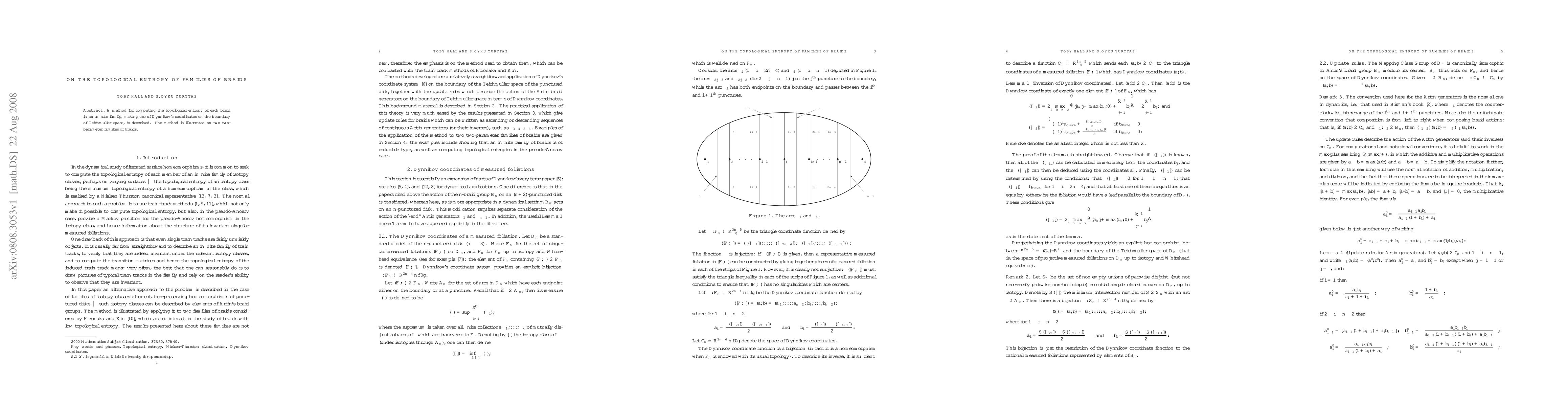 A method for computing the topological entropy of each braid in an infinite family, making use of Dynnikov's coordinates on the boundary of Teichm\"uller space, is described. The method is illustrated on two two-parameter families of braids.
