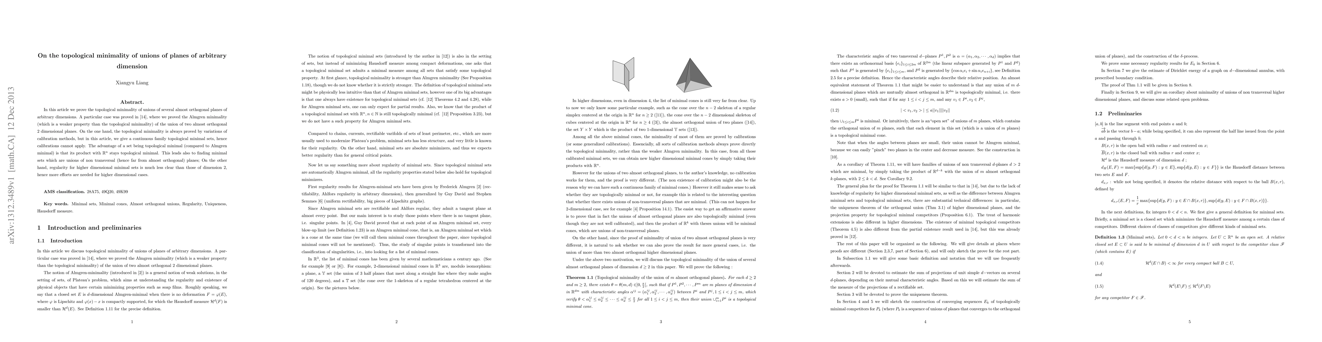 Researchers prove that unions of almost orthogonal planes of arbitrary dimension are topologically minimal, offering a new perspective on minimal sets with applications in geometry and calculus of variations.