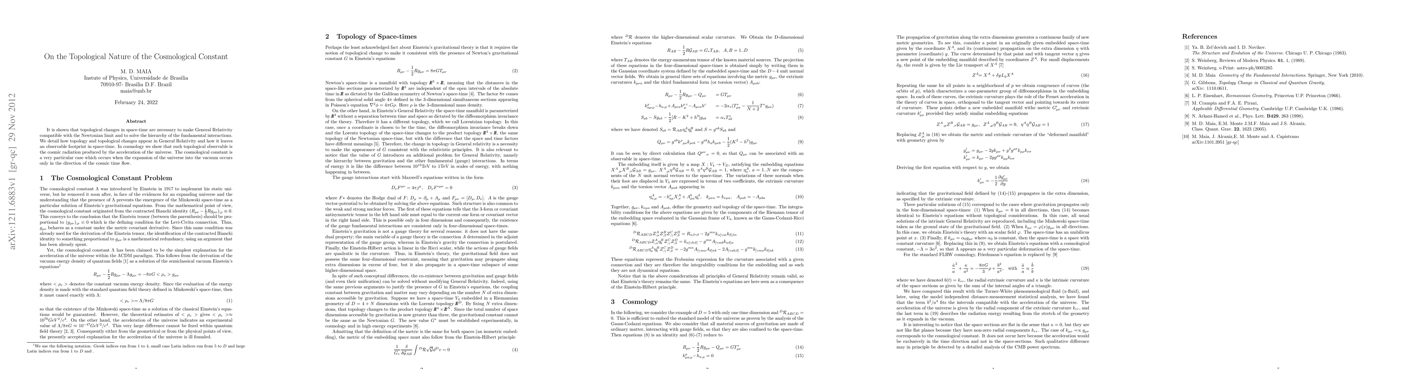 It is shown that topological changes in space-time are necessary to make General Relativity compatible with the Newtonian limit and to solve the hierarchy of the fundamental interactions. We detail how topology and topological changes appear in General Relativity and how it leaves an observable footprint in space-time. In cosmology we show that such topological observable is the cosmic radiation produced by the acceleration of the universe. The cosmological constant is a very particular case which occurs when the expansion of the universe into the vacuum occurs only in the direction of the cosmic time flow.