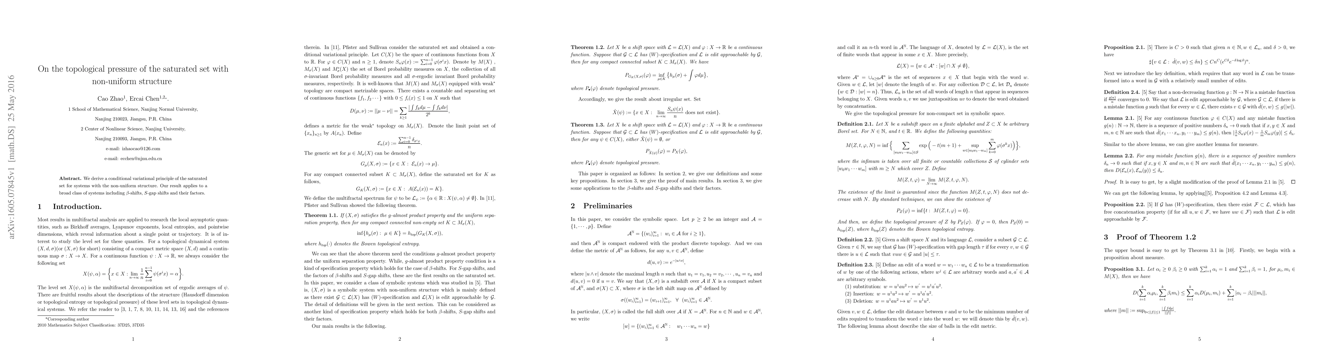 We derive a conditional variational principle of the saturated set for systems with the non-uniform structure. Our result applies to a broad class of systems including beta-shifts, S-gap shifts and their factors.