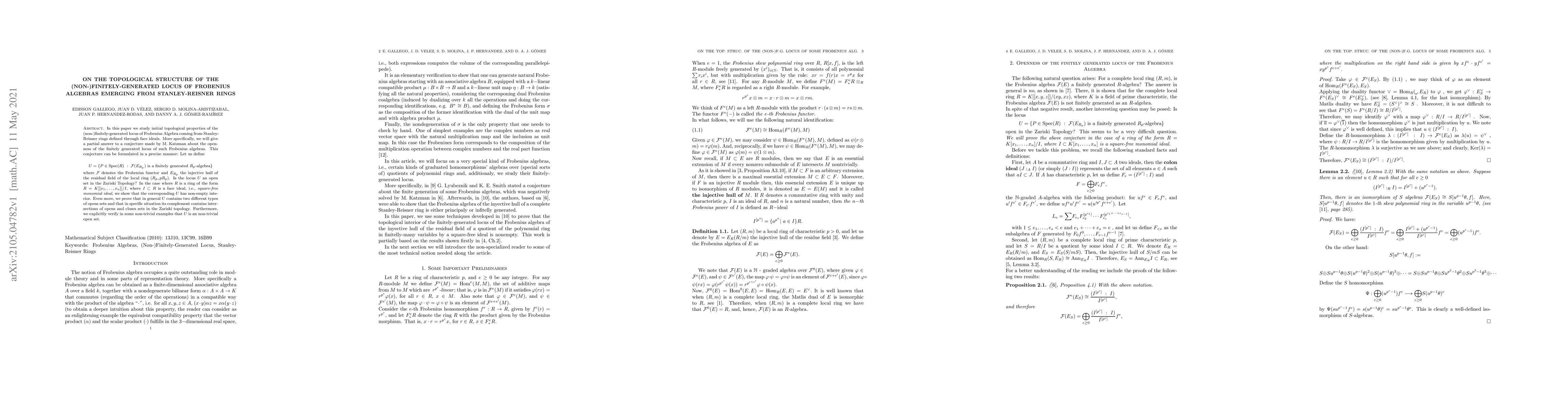 In this paper we study initial topological properties of the (non-)finitely-generated locus of Frobenius Algebra coming from Stanley-Reisner rings defined through face ideals. More specifically, we will give a partial answer to a conjecture made by M. Katzman about the openness of the finitely generated locus of such Frobenius algebras. This conjecture can be formulated in a precise manner: Let us define \begin{equation*} U=\{P\in \text{Spec}(R)~:~\mathcal{F}(E_{R_{p}})~\text{is a finitely generated}~R_{p}\text{-algebra}\} \end{equation*} where $\mathcal{F}$ denotes the Frobenius functor and $E_{R_{p}}$ the injective hull of the residual field of the local ring $(R_{p},pR_{p})$. Is the locus $U$ an open set in the Zariski Topology? In the case where $R$ is a ring of the form $R=K[[x_{1},\dots ,x_{n}]]/I,$ where $I\subset R$ is a face ideal, i.e., square-free monomial ideal, we show that the corresponding $U$ has non-empty interior. Even more, we prove that in general $U$ contains two different types of opens sets and that in specific situation its complement contains intersections of opens and closes sets in the Zariski topology. Furthermore, we explicitly verify in some non-trivial examples that $U$ is an non-trivial open set.