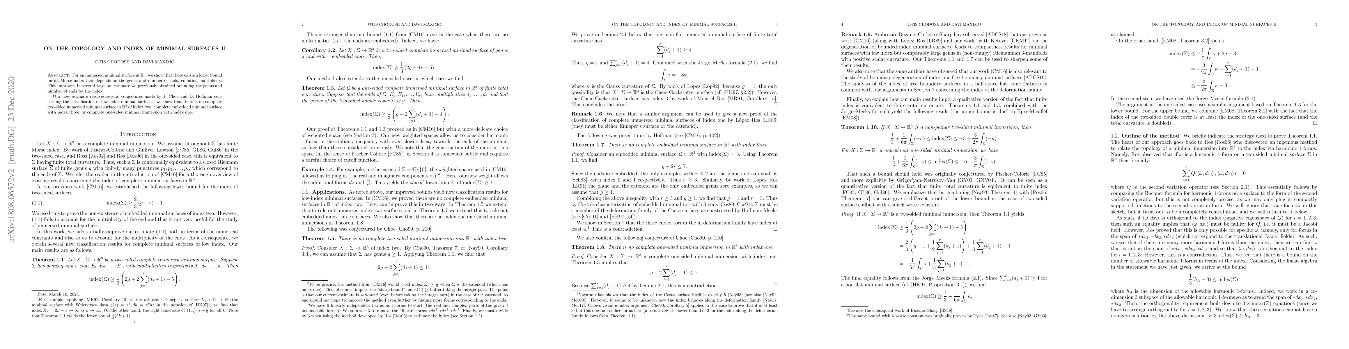 For an immersed minimal surface in $\mathbb{R}^3$, we show that there exists a lower bound on its Morse index that depends on the genus and number of ends, counting multiplicity. This improves, in several ways, an estimate we previously obtained bounding the genus and number of ends by the index. Our new estimate resolves several conjectures made by J. Choe and D. Hoffman concerning the classification of low-index minimal surfaces: we show that there are no complete two-sided immersed minimal surfaces in $\mathbb{R}^3$ of index two, complete embedded minimal surface with index three, or complete one-sided minimal immersion with index one.