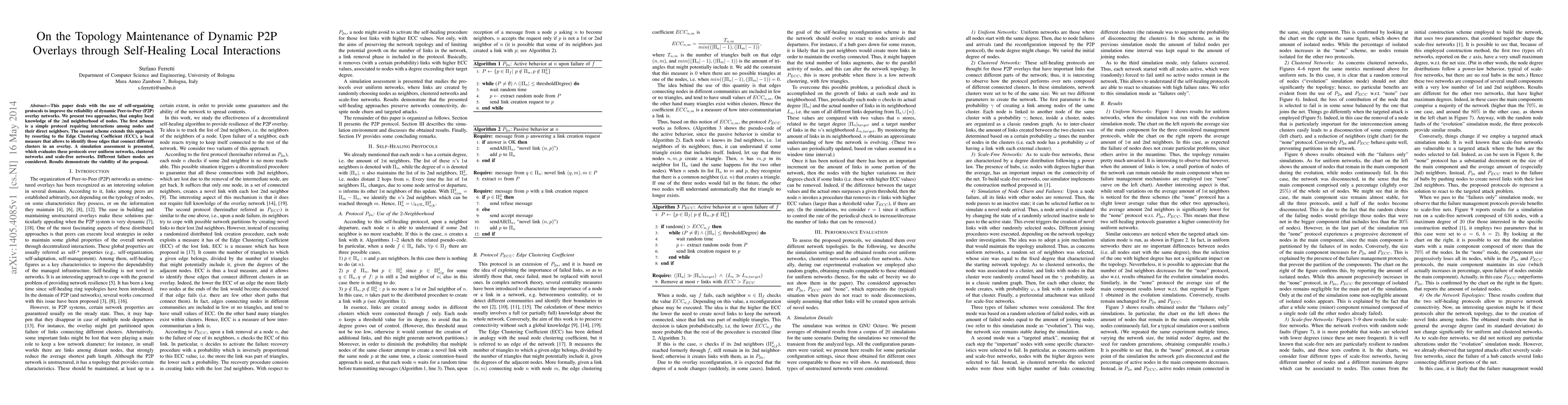 This paper deals with the use of self-organizing protocols to improve the reliability of dynamic Peer-to-Peer (P2P) overlay networks. We present two approaches, that employ local knowledge of the 2nd neighborhood of nodes. The first scheme is a simple protocol requiring interactions among nodes and their direct neighbors. The second scheme extends this approach by resorting to the Edge Clustering Coefficient (ECC), a local measure that allows to identify those edges that connect different clusters in an overlay. A simulation assessment is presented, which evaluates these protocols over uniform networks, clustered networks and scale-free networks. Different failure modes are considered. Results demonstrate the viability of the proposal.