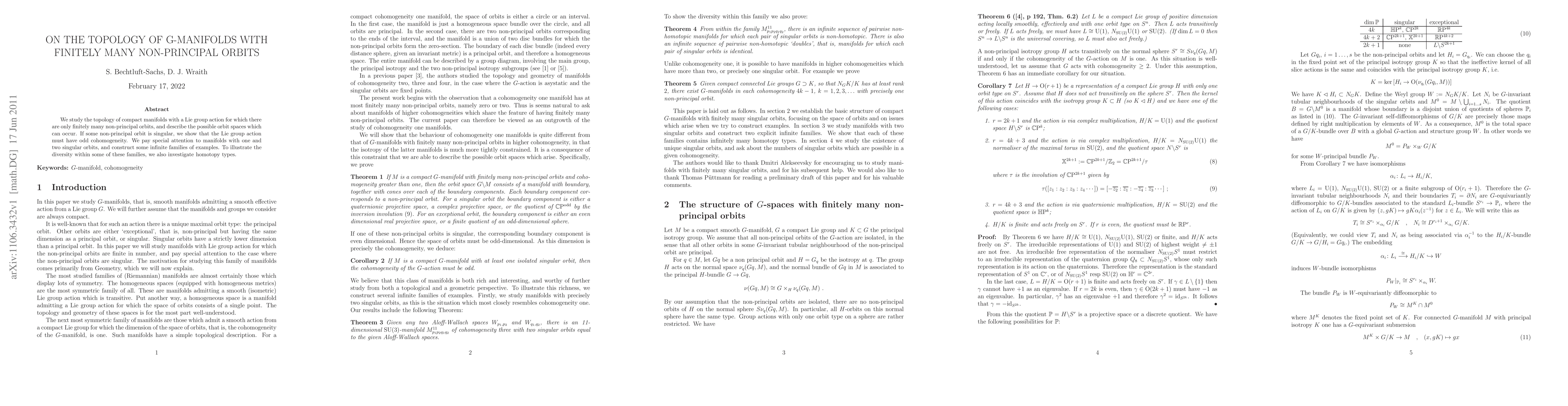 We study the topology of compact manifolds with a Lie group action for which there are only finitely many non-principal orbits, and describe the possible orbit spaces which can occur. If some non-principal orbit is singular, we show that the Lie group action must have odd cohomogeneity. We pay special attention to manifolds with one and two singular orbits, and construct some infinite families of examples. To illustrate the diversity within some of these families, we also investigate homotopy types.