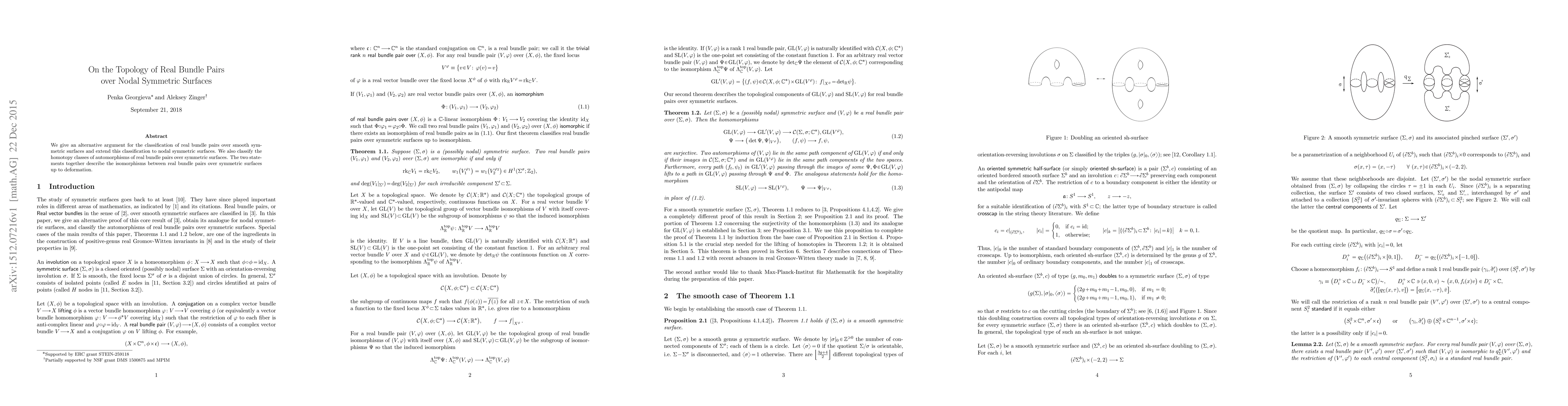 This paper classifies real bundle pairs over symmetric surfaces, including nodal symmetric surfaces, and establishes a connection between their automorphisms.