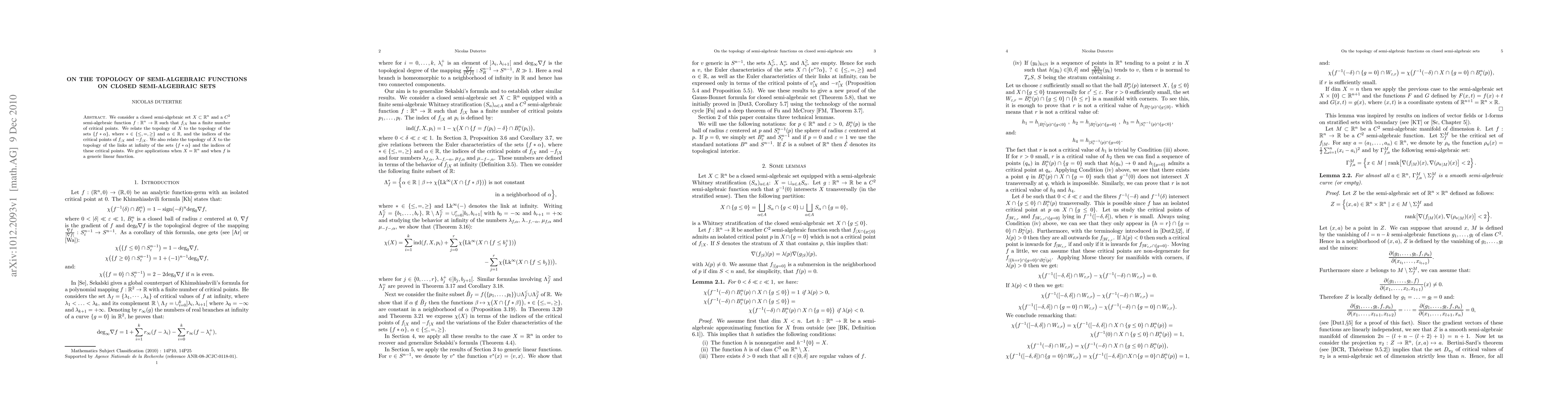 This paper explores the relationship between the topology of closed semi-algebraic sets and the critical points of semi-algebraic functions defined on them, providing formulas that connect these aspects and demonstrating applications in the context of linear functions on R^n.