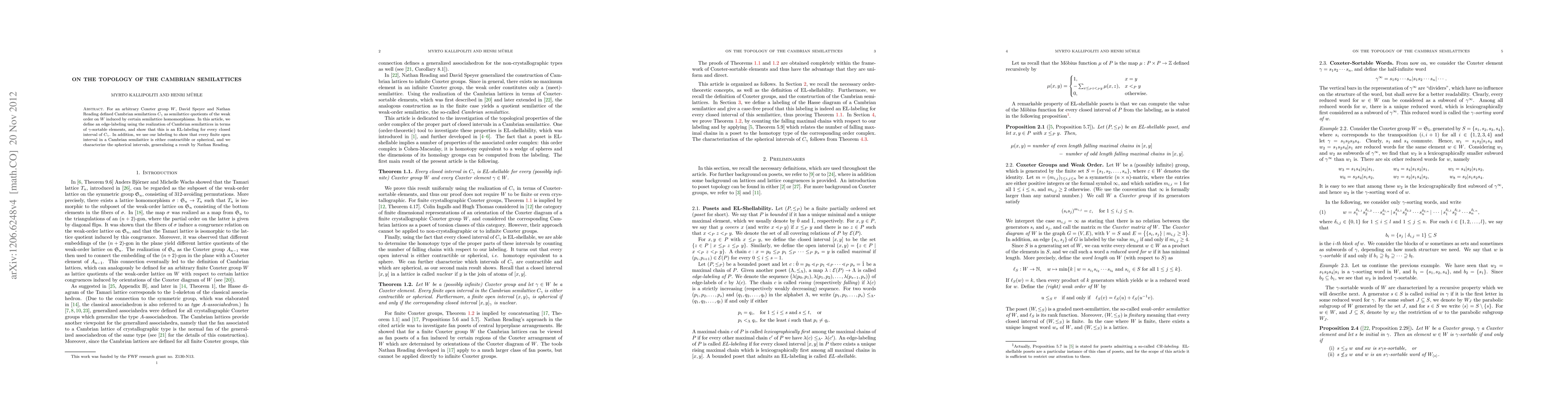 For an arbitrary Coxeter group $W$, David Speyer and Nathan Reading defined Cambrian semilattices $C_{\gamma}$ as semilattice quotients of the weak order on $W$ induced by certain semilattice homomorphisms. In this article, we define an edge-labeling using the realization of Cambrian semilattices in terms of $\gamma$-sortable elements, and show that this is an EL-labeling for every closed interval of $C_{\gamma}$. In addition, we use our labeling to show that every finite open interval in a Cambrian semilattice is either contractible or spherical, and we characterize the spherical intervals, generalizing a result by Nathan Reading.