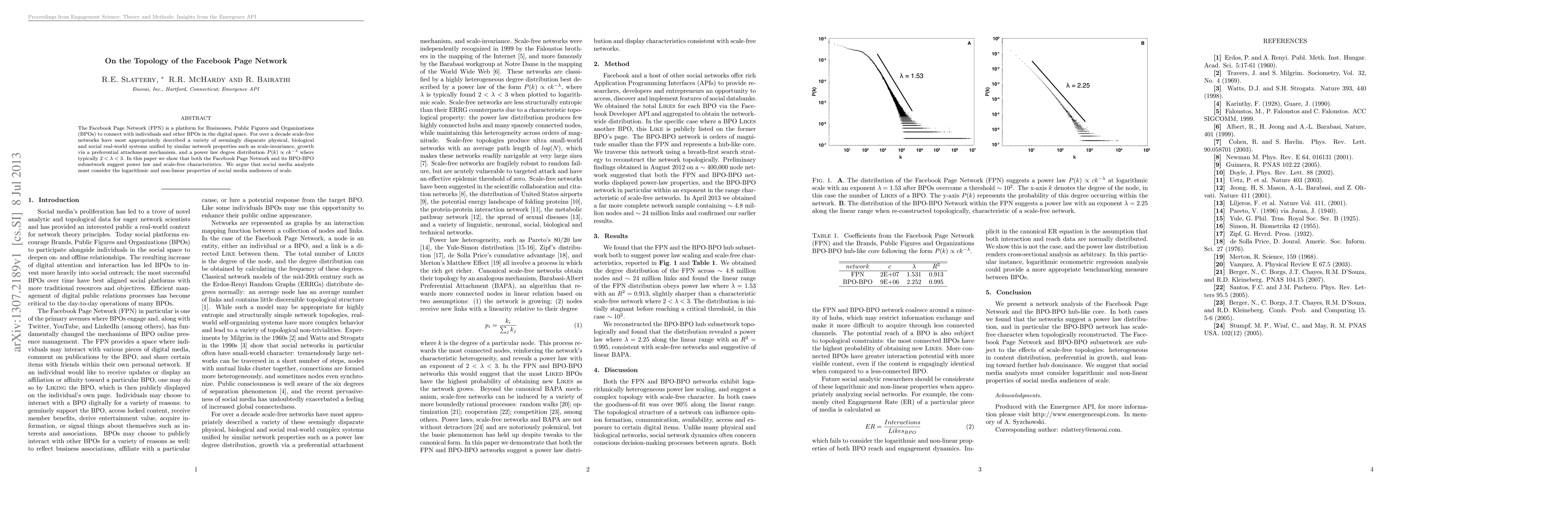The Facebook Page Network exhibits power law and scale-free characteristics, similar to other complex systems, and its social media audiences display non-linear properties.