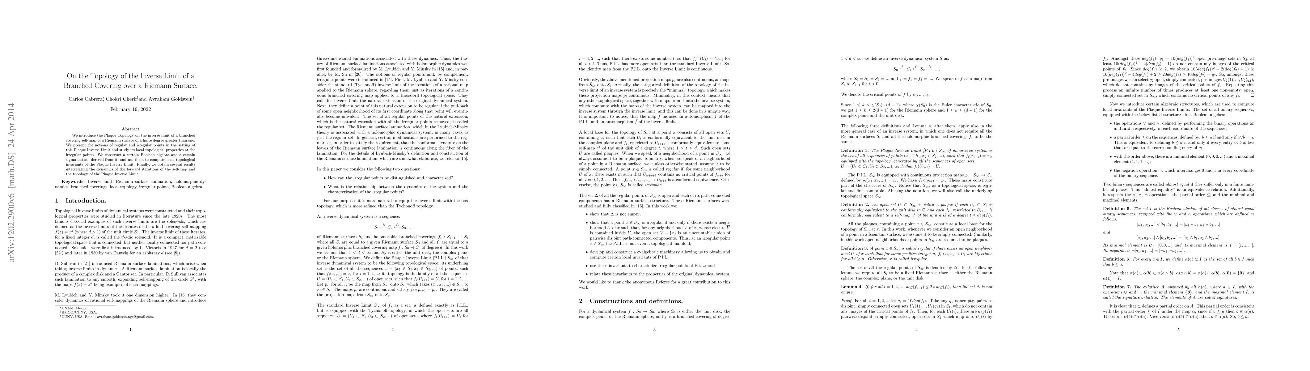 Researchers developed a new topology for the inverse limit of branched coverings over Riemann surfaces, enabling them to study local topological properties and relate dynamics to the resulting topology.