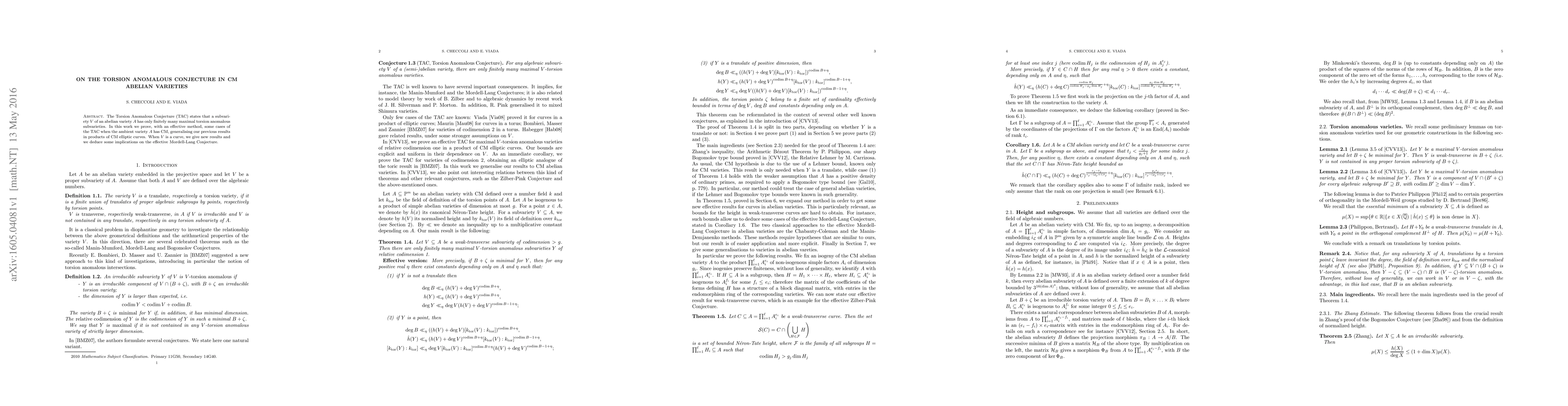 The Torsion Anomalous Conjecture (TAC) states that a subvariety V of an abelian variety A has only finitely many maximal torsion anomalous subvarieties. In this work we prove, with an effective method, some cases of the TAC when the ambient variety A has CM, generalising our previous results in products of CM elliptic curves. When V is a curve, we give new results and we deduce some implications on the effective Mordell-Lang Conjecture.