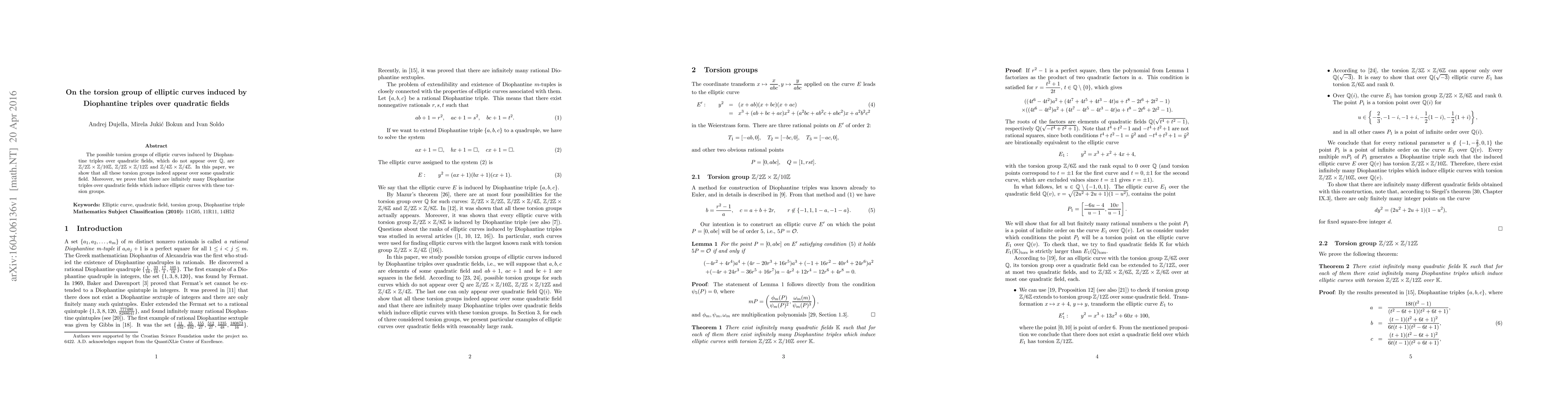Summary: This paper identifies three unique torsion groups for elliptic curves induced by Diophantine triples over quadratic fields and demonstrates their existence over such fields, showing that these groups arise from infinitely many such triples.