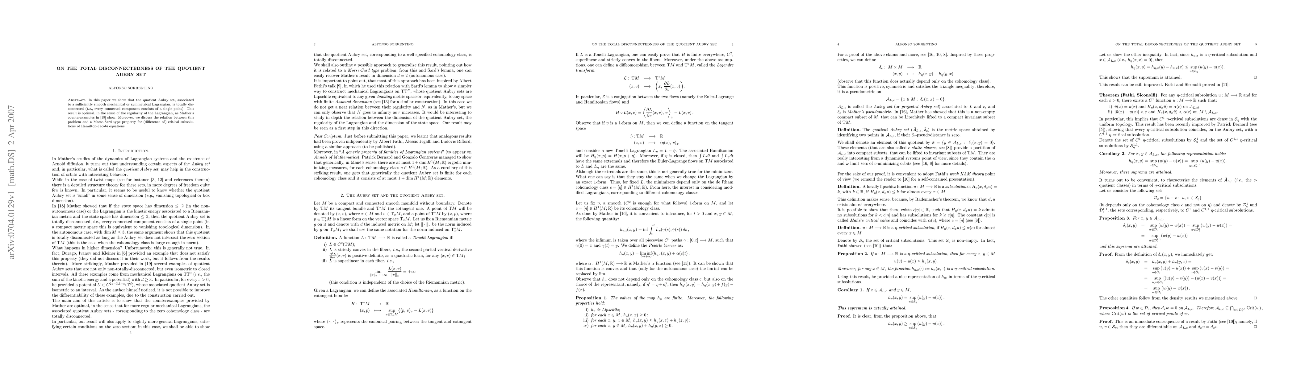 This paper shows that certain quotient Aubry sets associated with Lagrangians are totally disconnected, meaning they consist of a single point, and discusses the connection to Morse-Sard properties for Hamilton-Jacobi equations.