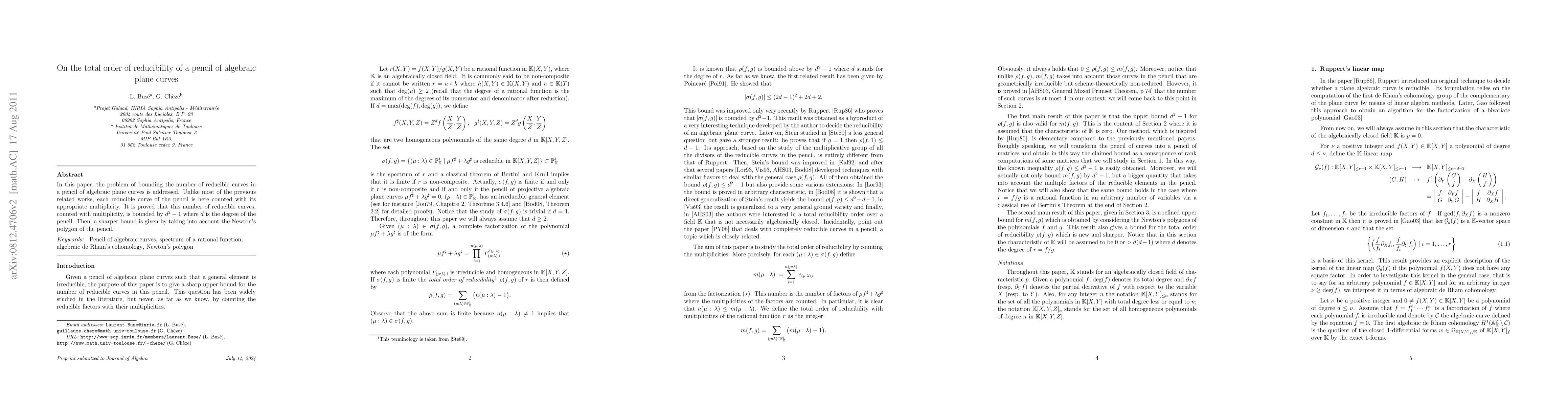 In this paper, the problem of bounding the number of reducible curves in a pencil of algebraic plane curves is addressed. Unlike most of the previous related works, each reducible curve of the pencil is here counted with its appropriate multiplicity. It is proved that this number of reducible curves, counted with multiplicity, is bounded by d^2-1 where d is the degree of the pencil. Then, a sharper bound is given by taking into account the Newton's polygon of the pencil.