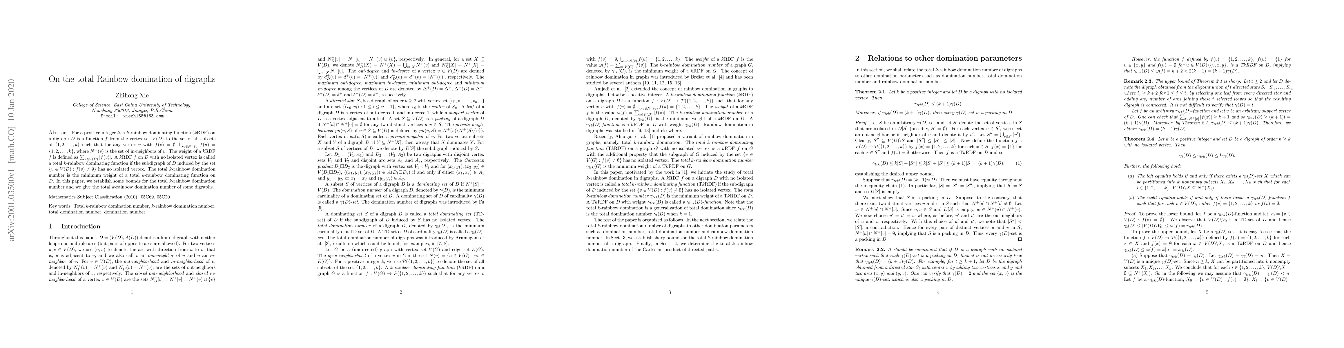 This paper investigates the concept of total $k$-rainbow domination in digraphs, defining a $k$-rainbow dominating function and establishing bounds for the minimum weight of such functions, also determining the total $k$-rainbow domination number for specific digraphs.