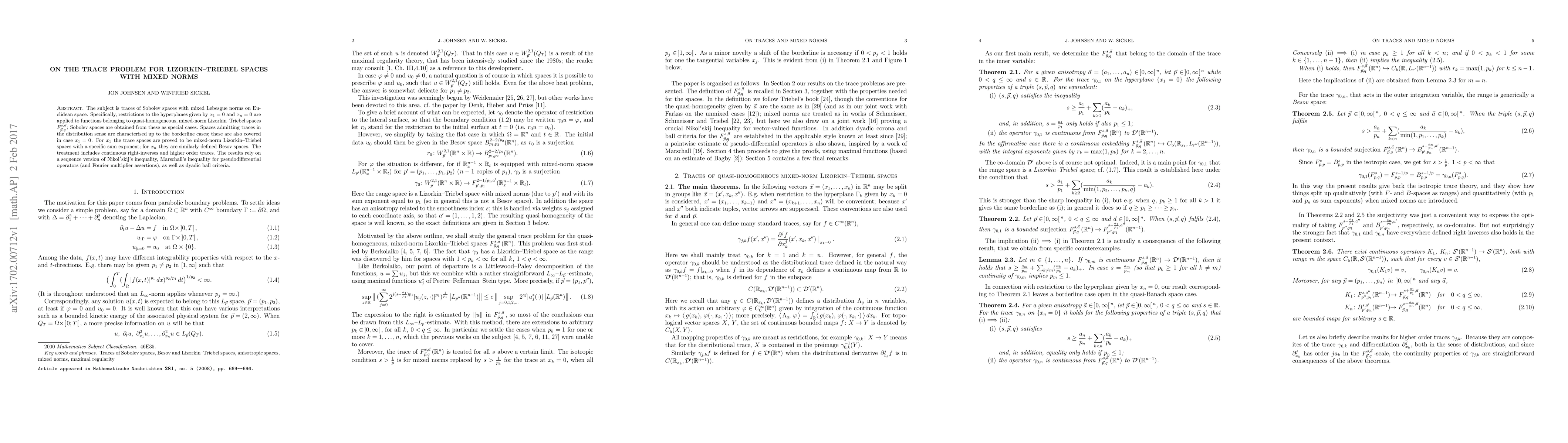 This paper studies the trace problem for quasi-homogeneous, mixed-norm Triebel-Lizorkin spaces on Euclidean space, focusing on Sobolev spaces as special cases. It characterizes spaces admitting distribution-sense traces, proving that trace spaces are mixed-norm Lizorkin-Triebel spaces for the first variable and Besov spaces for the last variable, supported by inequalities and criteria involving pseudo-differential operators.
