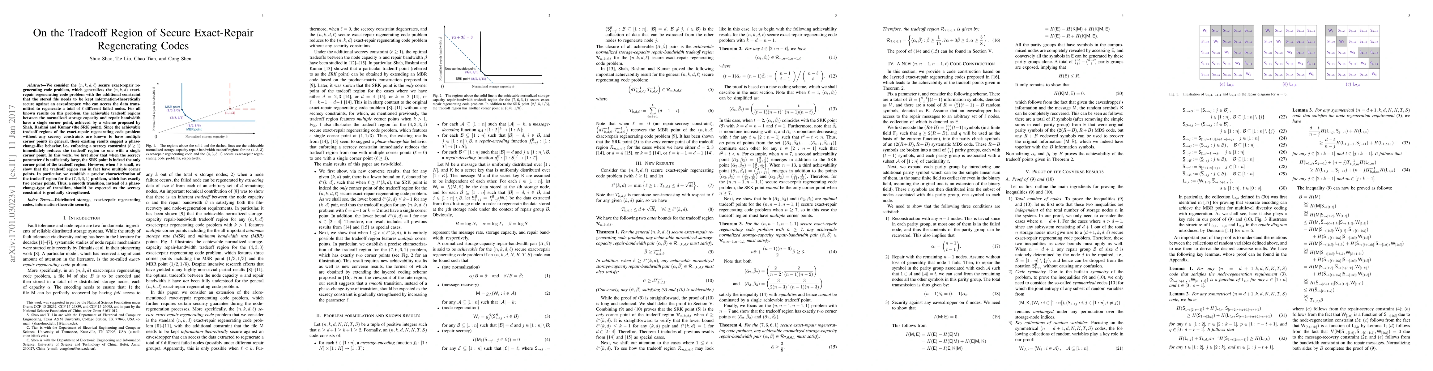 This paper investigates the tradeoff region between storage capacity and repair bandwidth for secure exact-repair regenerating codes, showing that while large secrecy constraints reduce the region to a single corner point, smaller constraints allow for multiple corner points. Specifically, it characterizes the $(7,6,6,1)$ problem, revealing two corner points, indicating a gradual transition rather than a phase-change as secrecy increases.