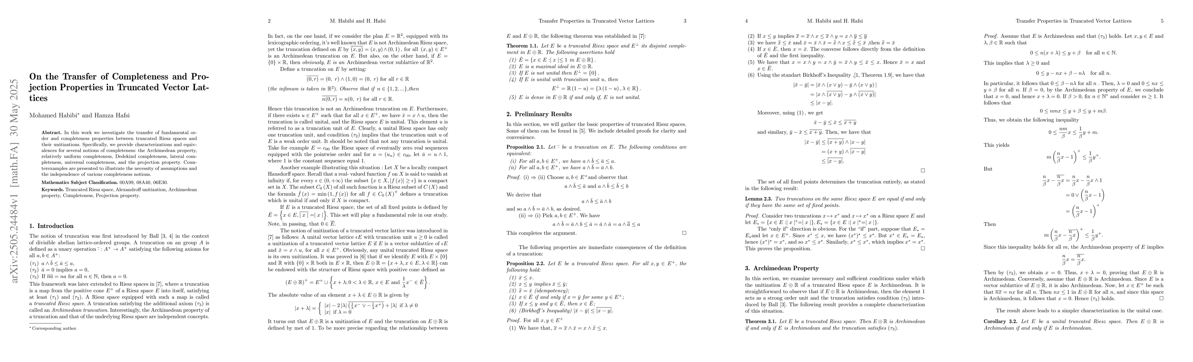 This work contributes to understanding fundamental properties in truncated vector lattices, which have applications in functional analysis and operator theory.