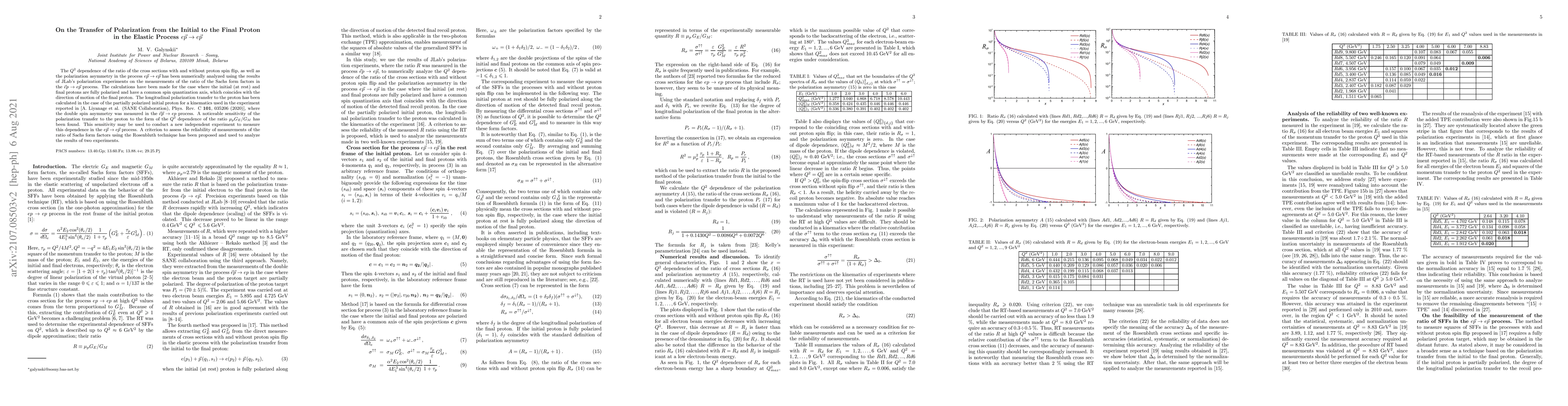 The $Q^2$ dependence of the ratio of the cross sections with and without proton spin flip, as well as the polarization asymmetry in the process $e \vec{p} \to e \vec{p}$ has been numerically analyzed using the results of JLab polarization experiments on the measurements of the ratio of the Sachs form factors in the $\vec{e} p \to e \vec{p}$ process. The calculations have been made for the case where the initial (at rest) and final protons are fully polarized and have a common spin quantization axis, which coincides with the direction of motion of the final proton. The longitudinal polarization transfer to the proton has been calculated in the case of the partially polarized initial proton for a kinematics used in the experiment reported in [A. Liyanage et al. (SANE Collaboration), Phys. Rev. C 101, 035206 (2020)], where the double spin asymmetry was measured in the $\vec{e} \vec{p} \to e p$ process. A noticeable sensitivity of the polarization transfer to the proton to the form of the $Q^2$ dependence of the ratio $\mu_p G_E/G_M$ has been found. This sensitivity may be used to conduct a new independent experiment to measure this dependence in the $ e \vec{p} \to e \vec{p}$ process. A criterion to assess the reliability of measurements of the ratio of Sachs form factors using the Rosenbluth technique has been proposed and used to analyze the results of two experiments.
