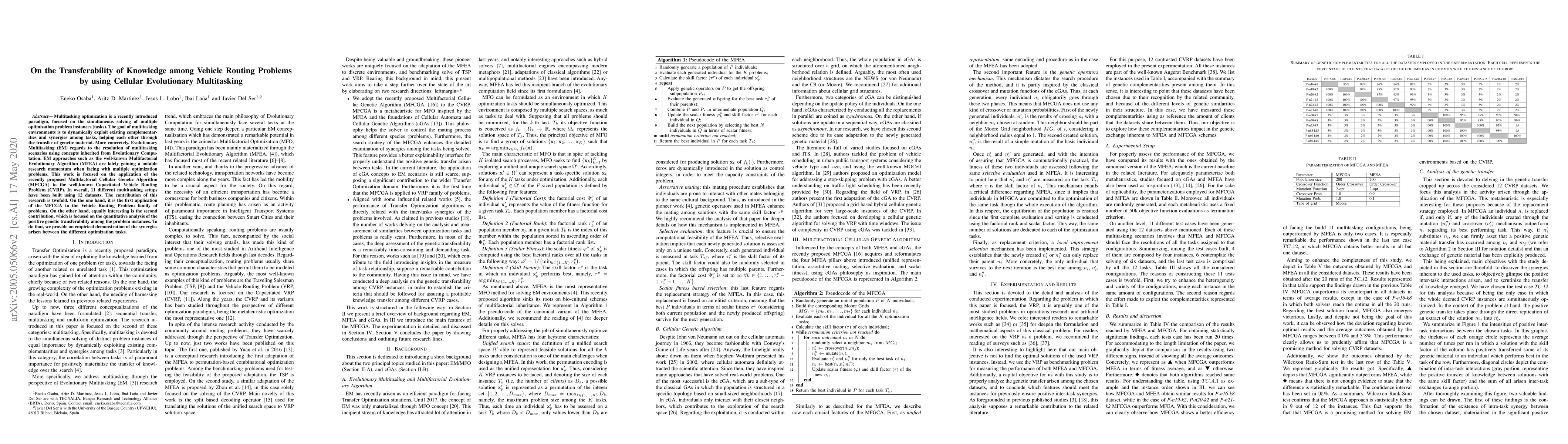 Multitasking optimization is a recently introduced paradigm, focused on the simultaneous solving of multiple optimization problem instances (tasks). The goal of multitasking environments is to dynamically exploit existing complementarities and synergies among tasks, helping each other through the transfer of genetic material. More concretely, Evolutionary Multitasking (EM) regards to the resolution of multitasking scenarios using concepts inherited from Evolutionary Computation. EM approaches such as the well-known Multifactorial Evolutionary Algorithm (MFEA) are lately gaining a notable research momentum when facing with multiple optimization problems. This work is focused on the application of the recently proposed Multifactorial Cellular Genetic Algorithm (MFCGA) to the well-known Capacitated Vehicle Routing Problem (CVRP). In overall, 11 different multitasking setups have been built using 12 datasets. The contribution of this research is twofold. On the one hand, it is the first application of the MFCGA to the Vehicle Routing Problem family of problems. On the other hand, equally interesting is the second contribution, which is focused on the quantitative analysis of the positive genetic transferability among the problem instances. To do that, we provide an empirical demonstration of the synergies arisen between the different optimization tasks.