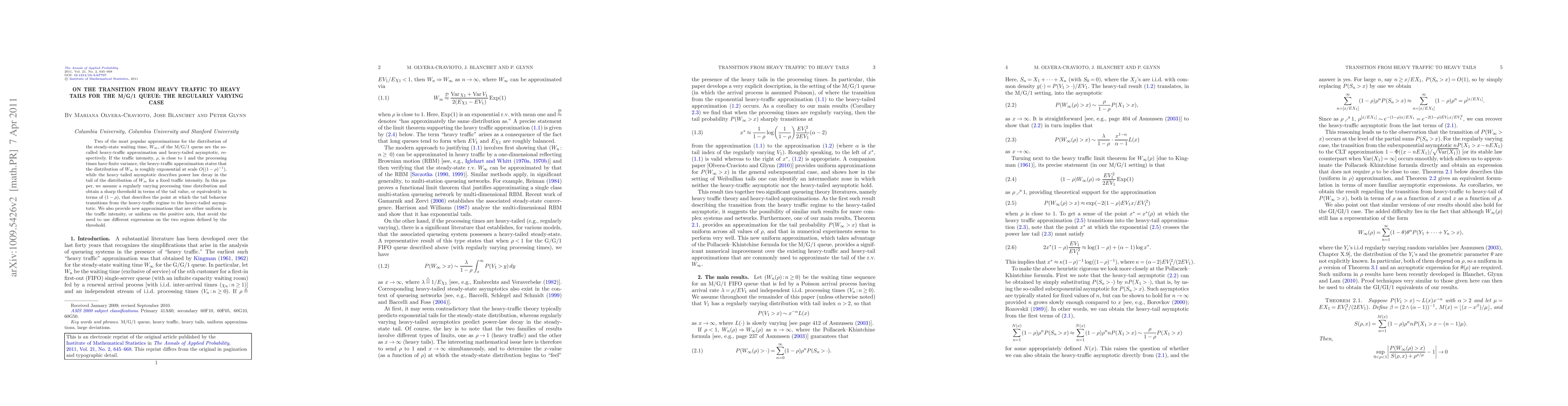 Two of the most popular approximations for the distribution of the steady-state waiting time, $W_{\infty}$, of the M/G/1 queue are the so-called heavy-traffic approximation and heavy-tailed asymptotic, respectively. If the traffic intensity, $\rho$, is close to 1 and the processing times have finite variance, the heavy-traffic approximation states that the distribution of $W_{\infty}$ is roughly exponential at scale $O((1-\rho)^{-1})$, while the heavy tailed asymptotic describes power law decay in the tail of the distribution of $W_{\infty}$ for a fixed traffic intensity. In this paper, we assume a regularly varying processing time distribution and obtain a sharp threshold in terms of the tail value, or equivalently in terms of $(1-\rho)$, that describes the point at which the tail behavior transitions from the heavy-traffic regime to the heavy-tailed asymptotic. We also provide new approximations that are either uniform in the traffic intensity, or uniform on the positive axis, that avoid the need to use different expressions on the two regions defined by the threshold.