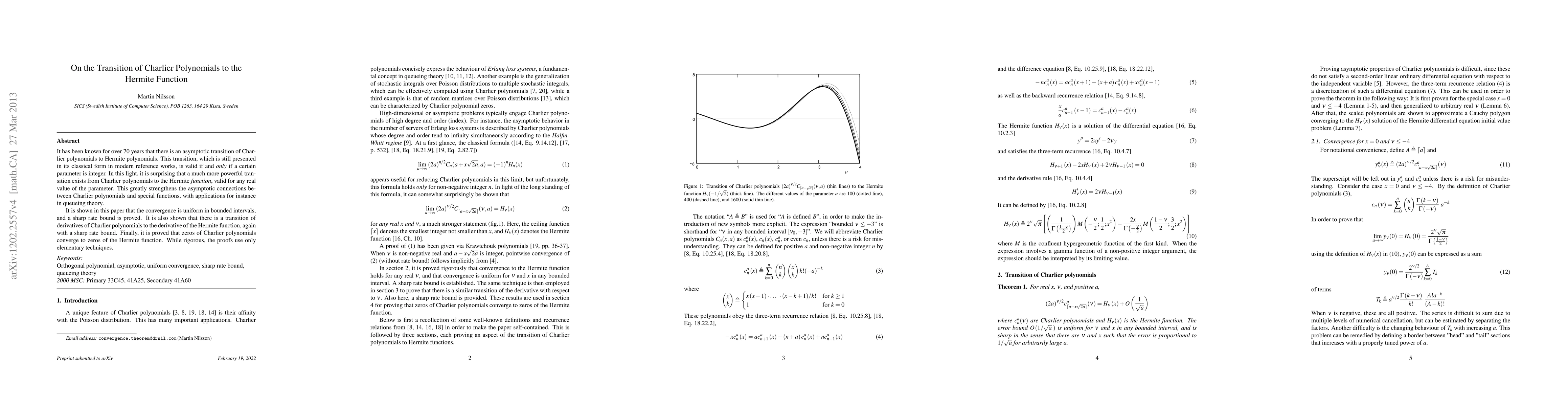 This paper reveals a more robust transition from Charlier polynomials to the Hermite function, valid for any real parameter, surpassing classical integer-parameter limits. It demonstrates uniform convergence in bounded intervals and provides sharp rate bounds, extending applications to queueing theory.
