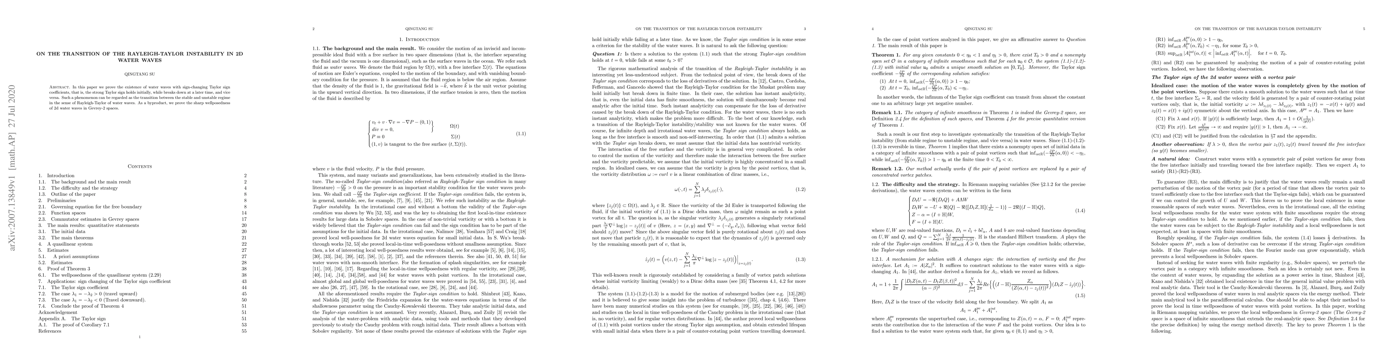 Researchers prove the existence of water waves with sign-changing Taylor signs, which transition between stable and unstable regimes in 2D water waves, leading to sharp well-posedness in certain function spaces.