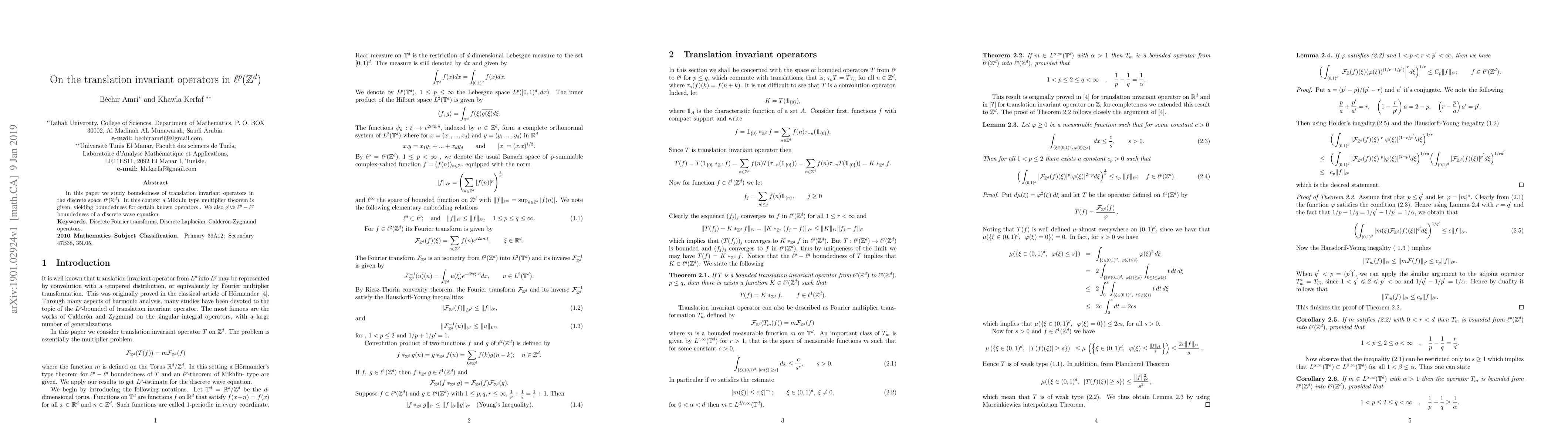 This paper investigates the boundedness of translation invariant operators in $\ell^p(\mathbb{Z}^d)$, presenting a Mikhlin type multiplier theorem and demonstrating $\ell^p-\ell^q$ boundedness for a discrete wave equation.