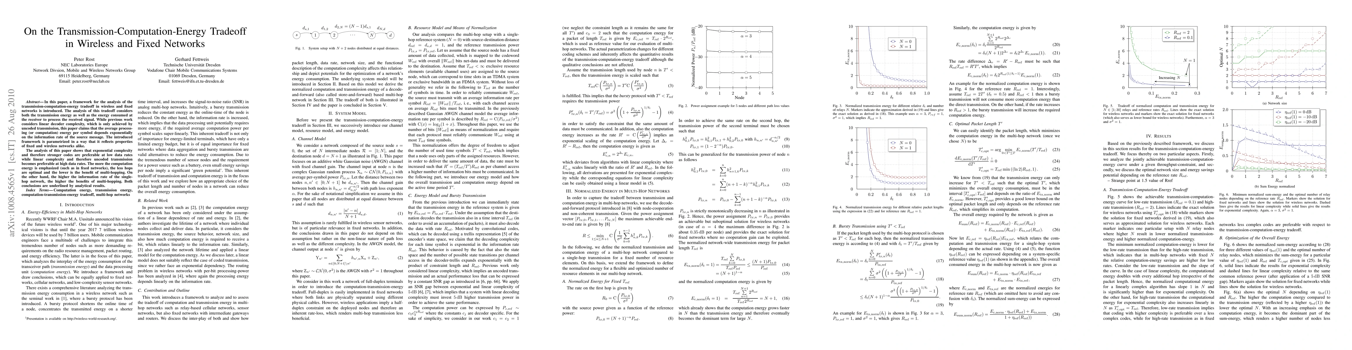 Researchers found that in wireless and fixed networks, transmission energy and computation energy trade off exponentially with information rate. At low data rates, stronger codes are preferable for fixed networks, while at high data rates, uncoded transmission is more beneficial.