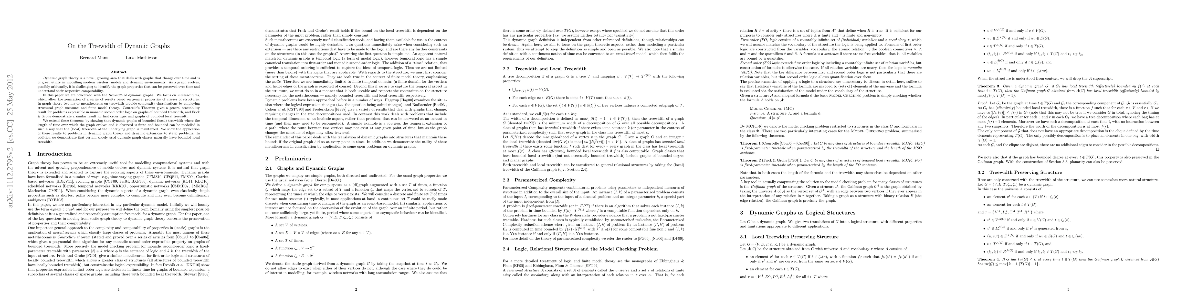 This paper explores the treewidth of dynamic graphs, focusing on metatheorems that maintain bounded treewidth over finite, bounded evolution periods. It extends existing theorems to show that dynamic graphs with bounded (local) treewidth can retain this property, with applications to dynamic graph theory and extensions of static problems.