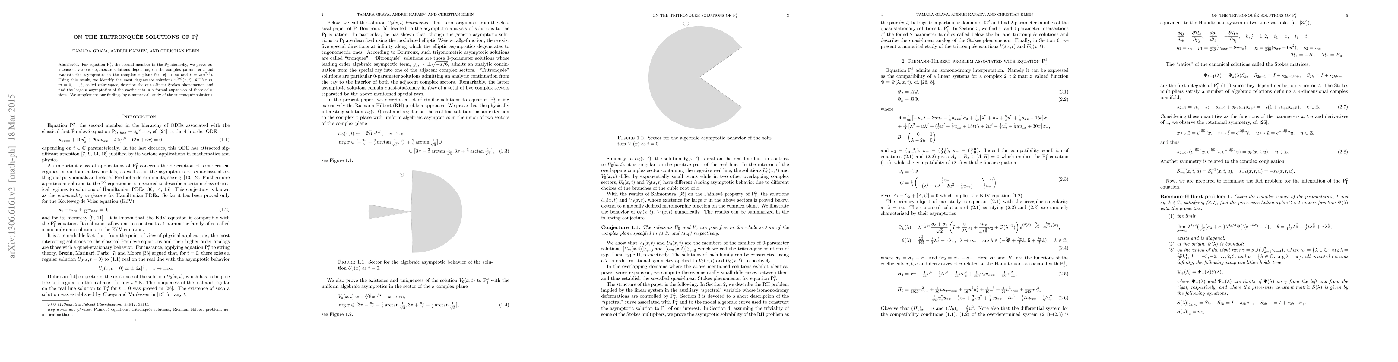 For equation P$_I^2$, the second member in the P$_I$ hierarchy, we prove existence of various degenerate solutions depending on the complex parameter $t$ and evaluate the asymptotics in the complex $x$ plane for $|x|\to\infty$ and $t=o(x^{2/3})$. Using this result, we identify the most degenerate solutions $u^{(m)}(x,t)$, $\hat u^{(m)}(x,t)$, $m=0,...,6$, called {\em tritronqu\'ee}, describe the quasi-linear Stokes phenomenon and find the large $n$ asymptotics of the coefficients in a formal expansion of these solutions. We supplement our findings by a numerical study of the tritronqu\'ee solutions.