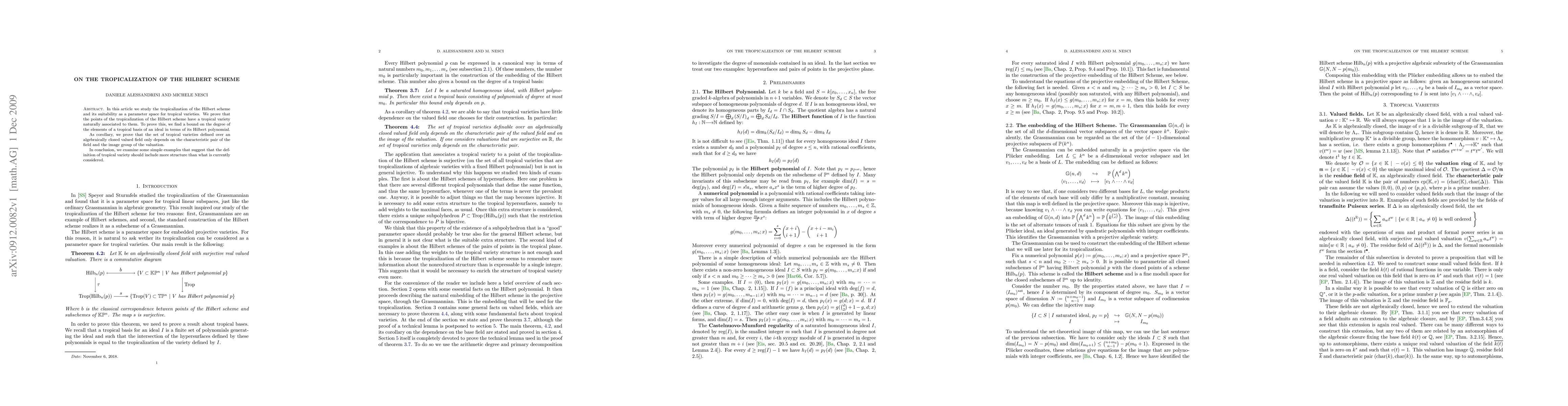 This paper explores the tropicalization of the Hilbert scheme, proving that points in its tropicalization have a naturally associated tropical variety, which depends on the field's characteristic pair and image group. The study suggests adding more structure to the definition of tropical varieties.