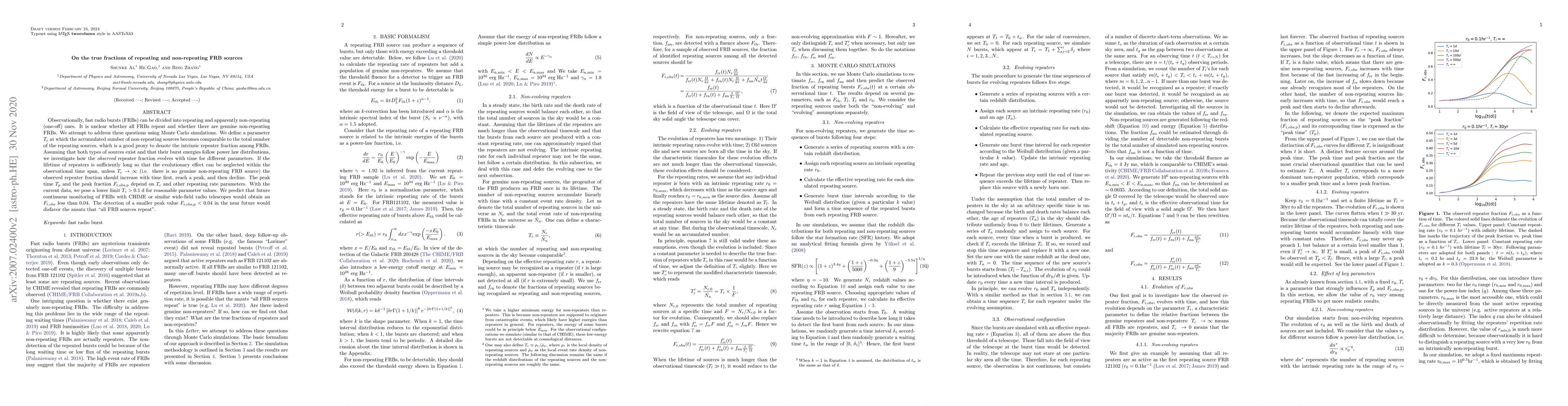 Observationally, fast radio bursts (FRBs) can be divided into repeating and apparently non-repeating (one-off) ones. It is unclear whether all FRBs repeat and whether there are genuine non-repeating FRBs. We attempt to address these questions using Monte Carlo simulations. We define a parameter $T_c$ at which the accumulated number of non-repeating sources becomes comparable to the total number of the repeating sources, which is a good proxy to denote the intrinsic repeater fraction among FRBs. Assuming that both types of sources exist and that their burst energies follow power law distributions, we investigate how the {\em observed} repeater fraction evolves with time for different parameters. If the lifetime of repeaters is sufficiently long so that the evolutionary effect can be neglected within the observational time span, unless $T_c \rightarrow \infty$ (i.e. there is no genuine non-repeating FRB source) the observed repeater fraction should increase with time first, reach a peak, and then decline. The peak time $T_p$ and the peak fraction $F_{\rm r,obs,p}$ depend on $T_c$ and other repeating rate parameters. With the current data, we pose a lower limit $T_c > 0.1$ d for reasonable parameter values. We predict that future continuous monitoring of FRBs with CHIME or similar wide-field radio telescopes would obtain an $F_{\rm r,obs}$ less than $0.04$. The detection of a smaller peak value $F_{\rm r,obs,p}<0.04$ in the near future would disfavor the ansatz that "all FRB sources repeat".