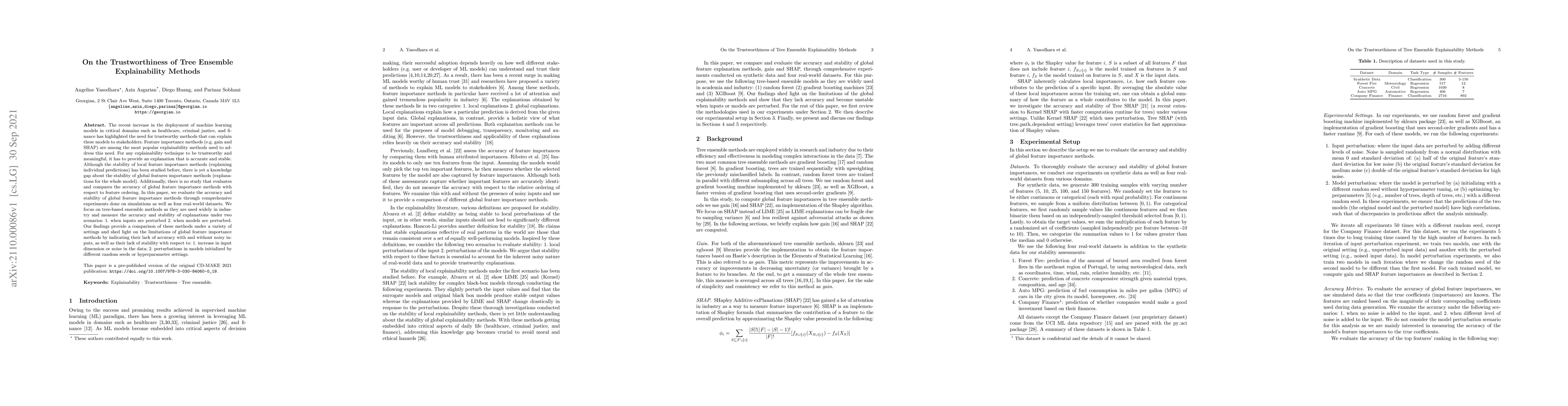 This paper evaluates the accuracy and stability of global feature importance methods for tree ensemble models, finding significant limitations in their reliability under various perturbations, including input noise and model changes. The study highlights the lack of accuracy and stability in these methods across different scenarios.