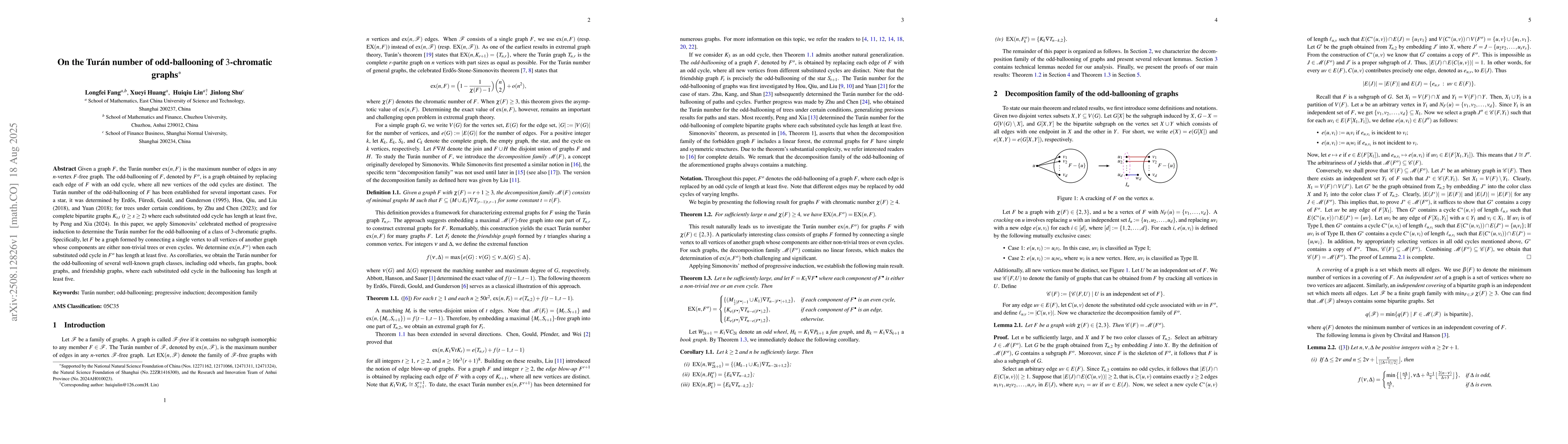 Given a graph $F$, the Tur\'{a}n number ${\rm ex}(n,F)$ is the maximum number of edges in any $n$-vertex $F$-free graph. The odd-ballooning of $F$, denoted by $F^{o}$, is a graph obtained by replacing each edge of $F$ with an odd cycle, where all new vertices of the odd cycles are distinct. The Tur\'{a}n number of the odd-ballooning of $F$ has been established for several important cases. For a star, it was determined by Erd\H{o}s, F\"{u}redi, Gould, and Gunderson (1995), Hou, Qiu, and Liu (2018), and Yuan (2018); for trees under certain conditions, by Zhu and Chen (2023); and for complete bipartite graphs $K_{s,t}$ ($t\geq s \geq 2$) where each substituted odd cycle has length at least five, by Peng and Xia (2024). In this paper, we apply Simonovits' celebrated method of progressive induction to determine the Tur\'{a}n number for the odd-ballooning of a class of $3$-chromatic graphs. Specifically, let $F$ be a graph formed by connecting a single vertex to all vertices of another graph whose components are either non-trivial trees or even cycles. We determine ${\rm ex}(n,F^{o})$ when each substituted odd cycle in $F^{o}$ has length at least five. As corollaries, we obtain the Tur\'{a}n number for the odd-ballooning of several well-known graph classes, including odd wheels, fan graphs, book graphs, and friendship graphs, where each substituted odd cycle in the ballooning has length at least five.